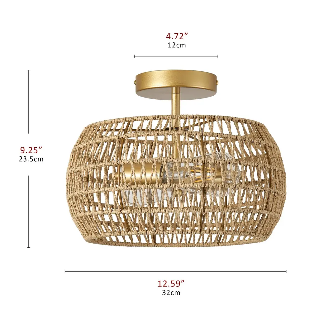 Bring a natural bohemian touch to your space with this hand-woven rattan Semi Flush Mount ceiling light. The 3-light design provides 360° illumination, casting beautiful reflections on the ceiling for a warm and inviting ambiance. Compatible with E12 bulbs up to 40W, it supports dimmable options for adjustable brightness. Perfect for hallways, bedrooms, kitchens, and living areas, this high-quality rattan fixture blends style, durability, and eco-friendly charm.