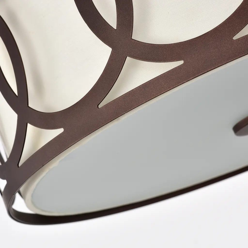 This 3-light semi-flush mount will complement many transitional decors throughout your home. The clean lines of the steel frame add interest while the combination of the fabric drum shade and frosted diffuser softens the light providing a relaxing atmosphere for many spaces. Beautiful Oil Rubbed Bronze or Chrome finishes. Wipe clean with a dry cloth. Requires: Three (3) 100 W medium base bulbs (Not Included). Fixture Dimensions: 9.25 inches high x 15 inch diameter. Since these are hand crafted products, the exact color of glass pieces may vary. Colors of the glass will appear darker and less vibrant when not illuminated. Handmade glass will vary from one piece to the other; glass made at different times will also vary. Light bulbs used in lamps or ambient lighting may affect the appearance of the products.