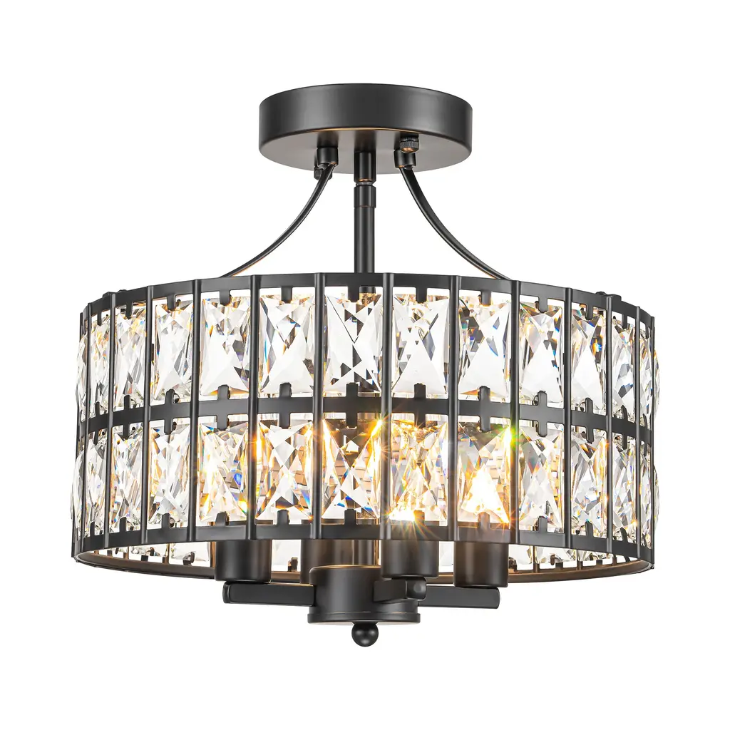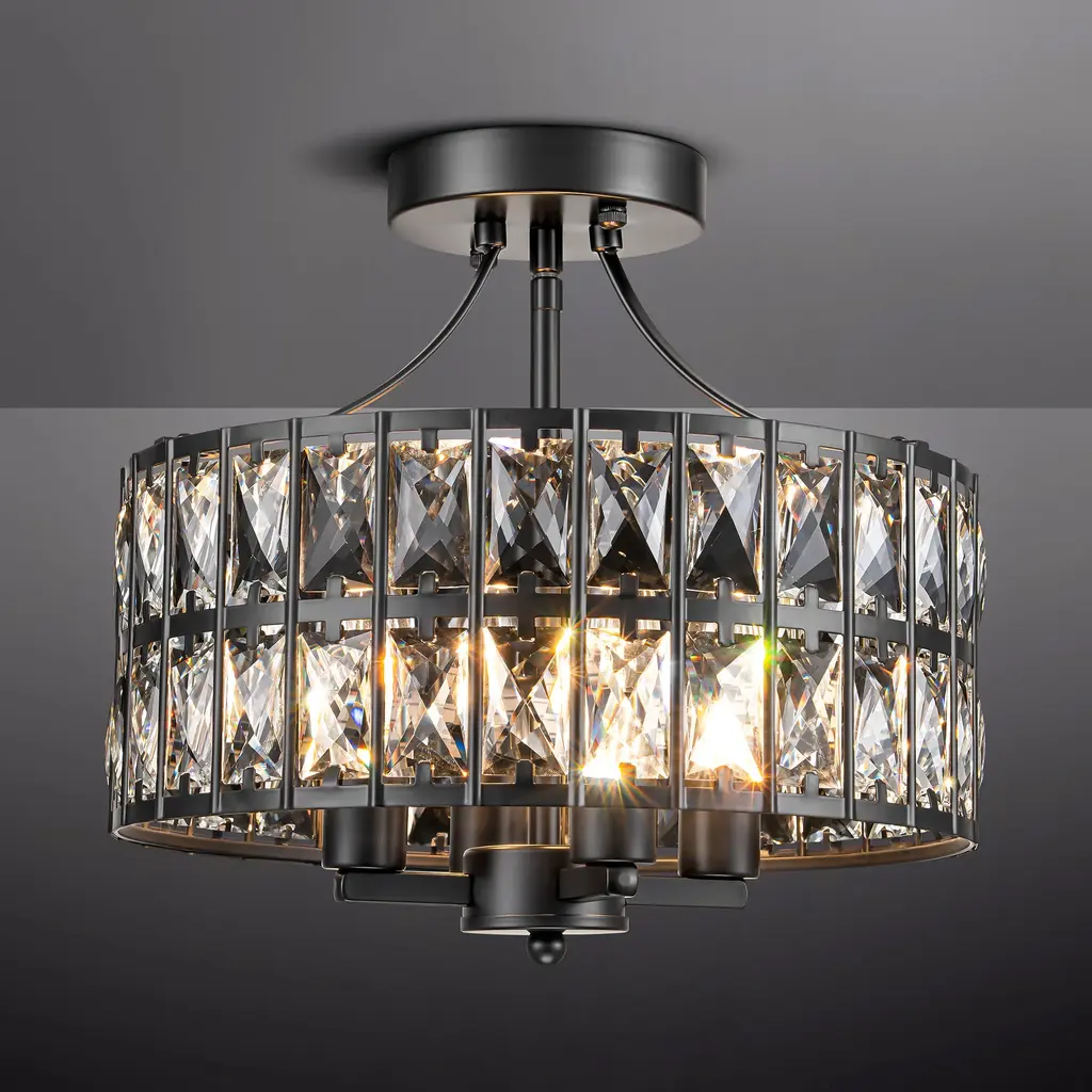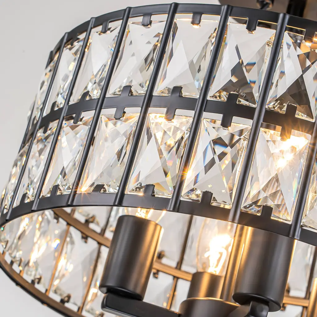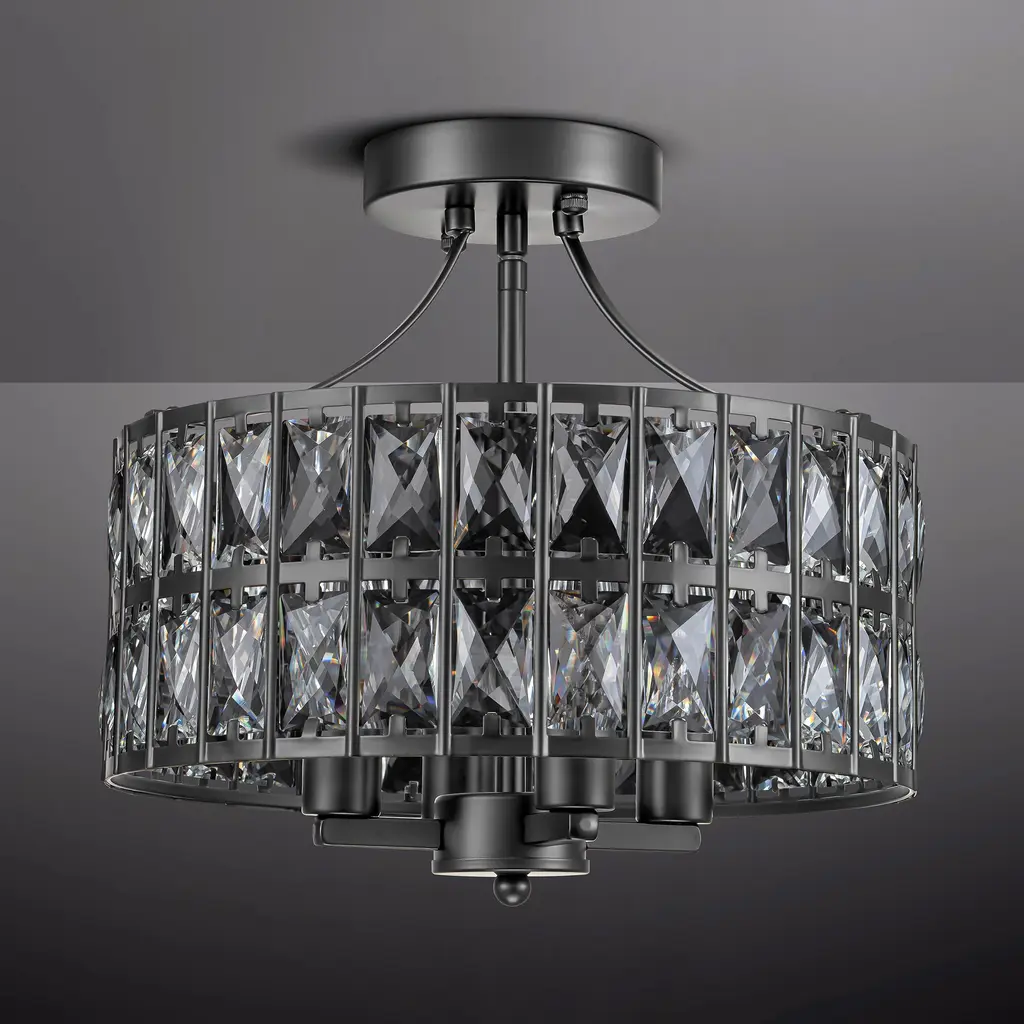 4-Light Modern Vintage Drum Crystal Semi-Flush Mount Ceiling Light - Black