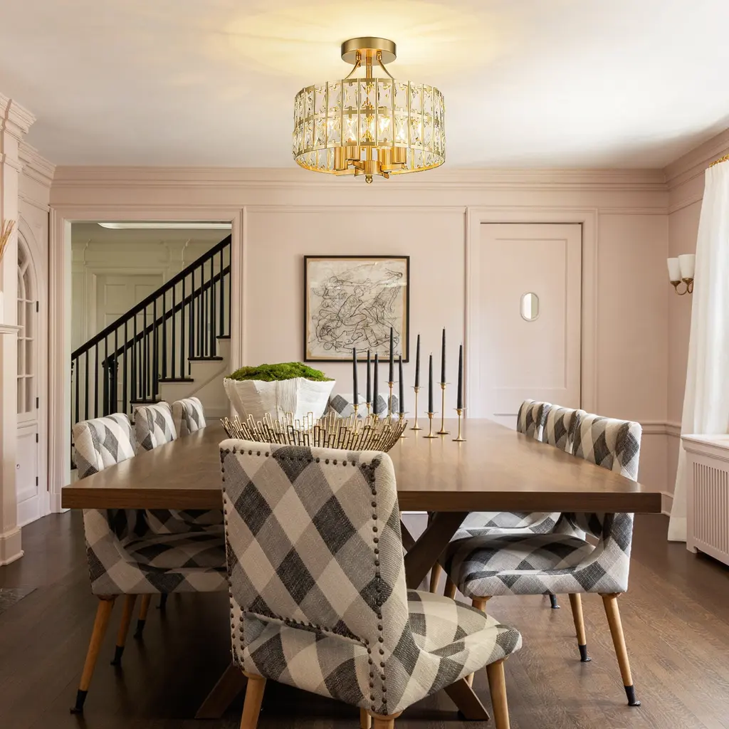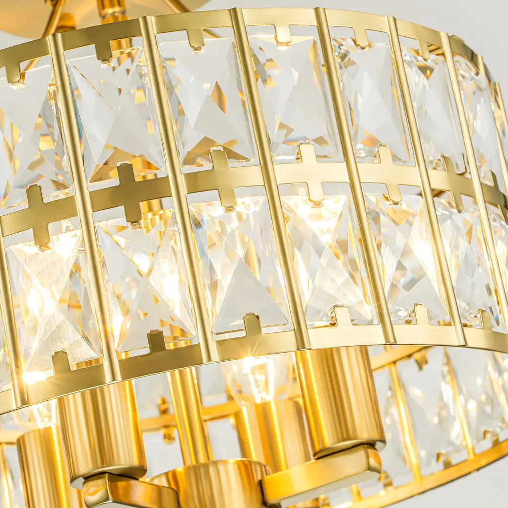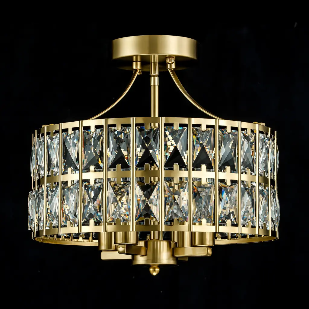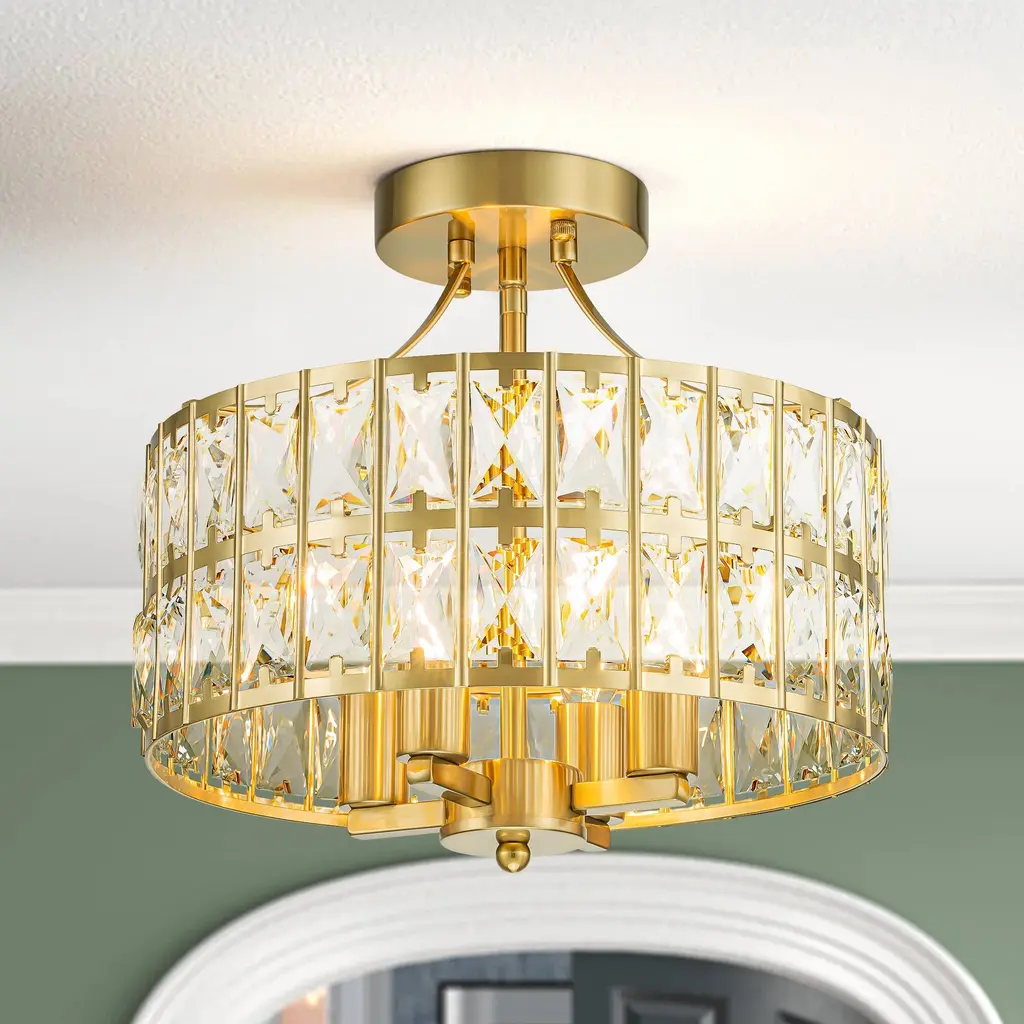 4-Light Modern Vintage Drum Crystal Semi-Flush Mount Ceiling Light - Brushed Brass