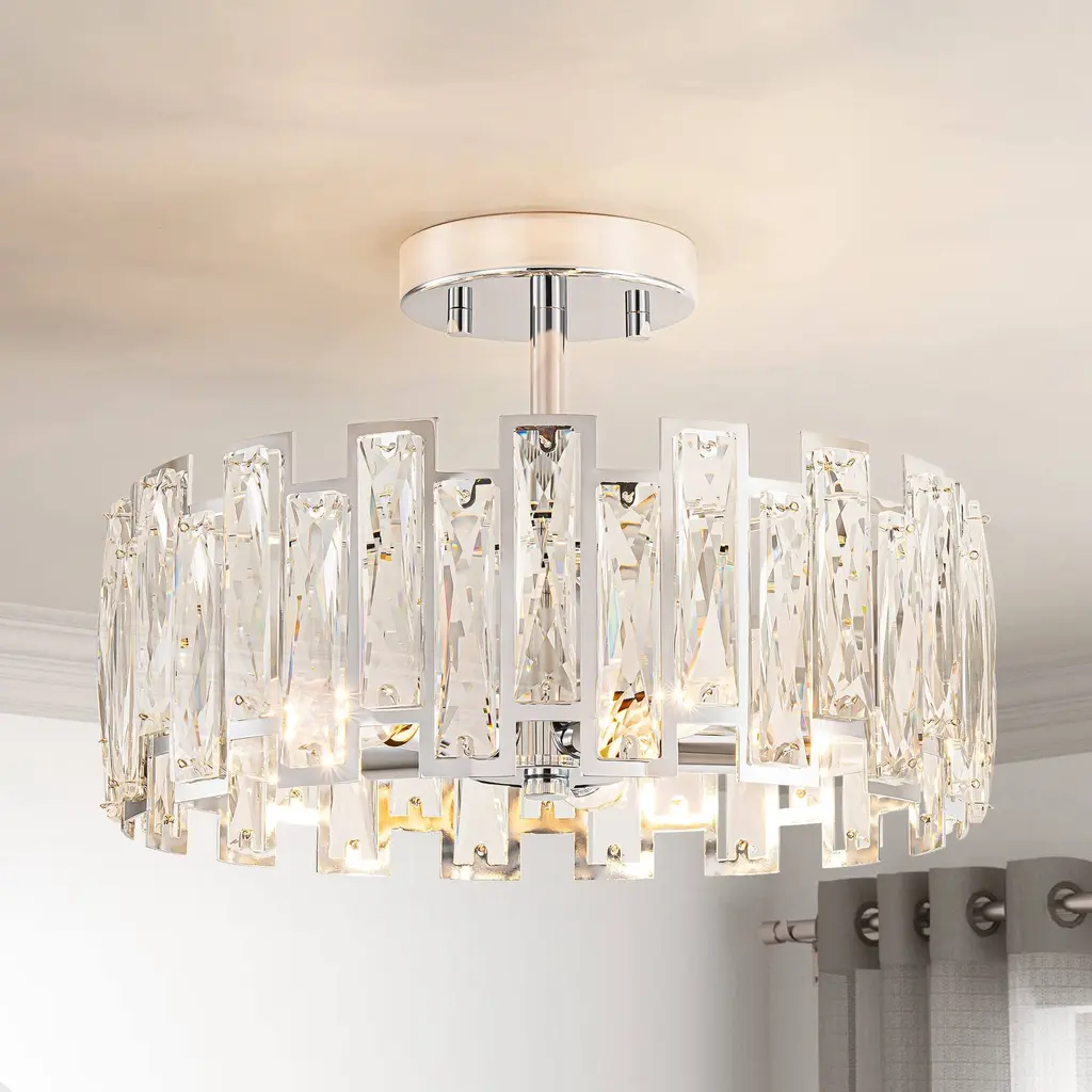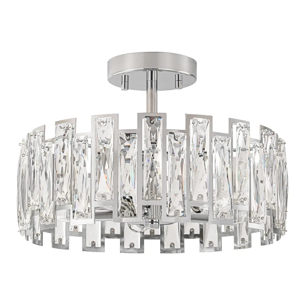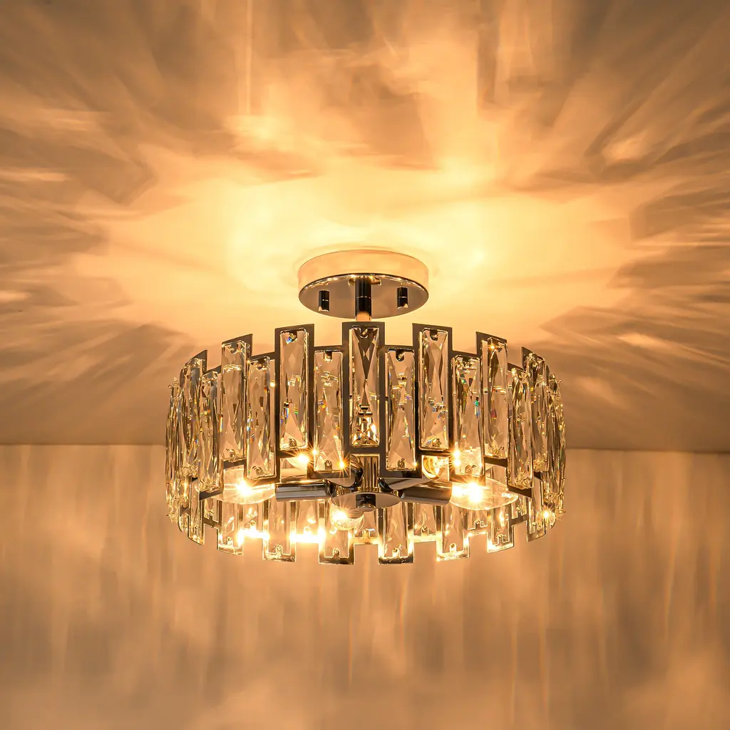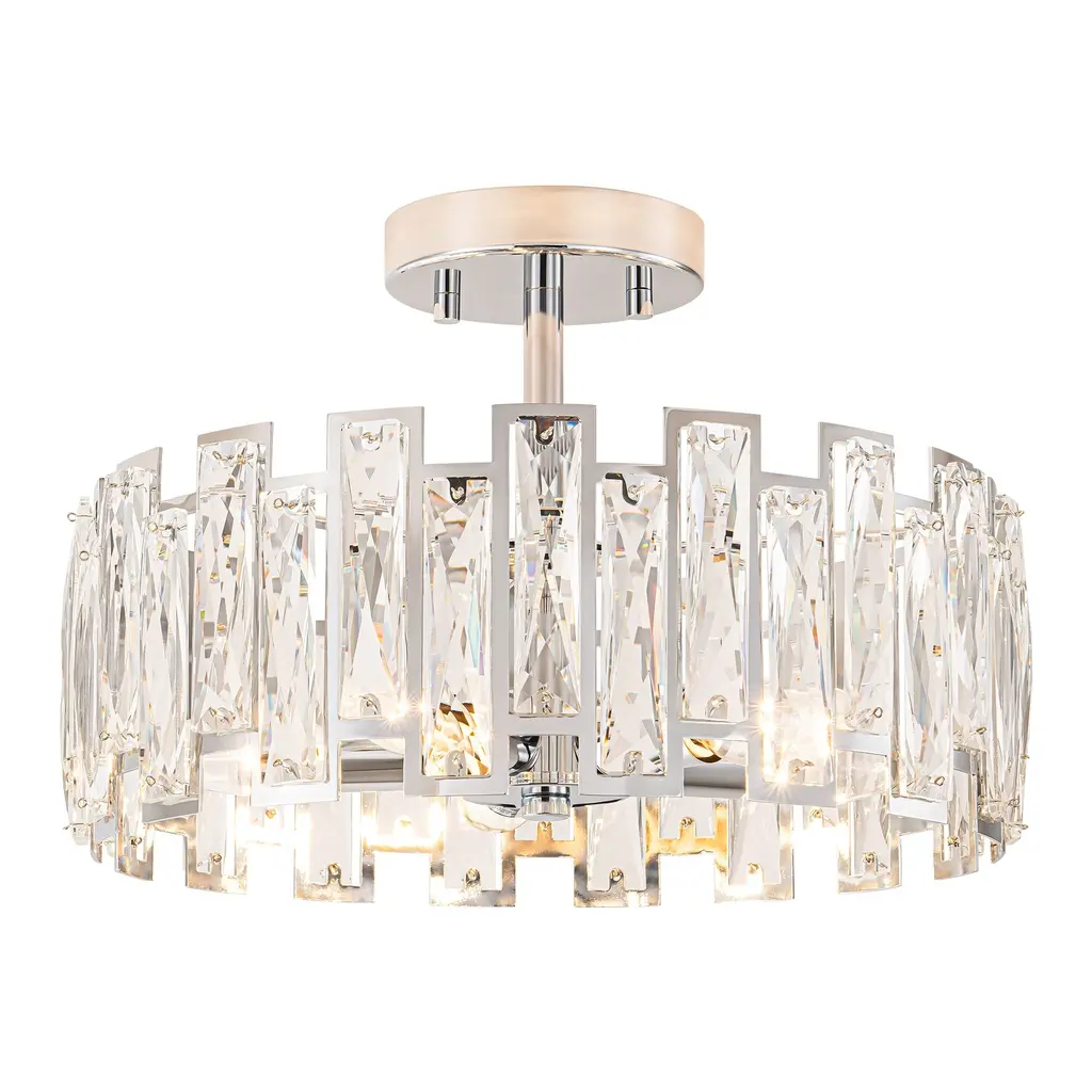 5-Light Mid-Century Modern Glam Drum Crystal Semi-Flush Mount Light - Chrome
