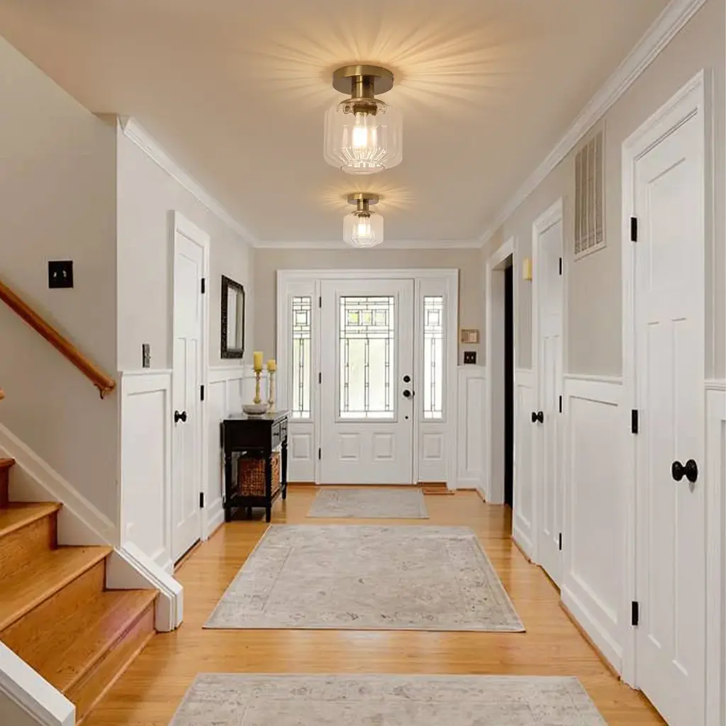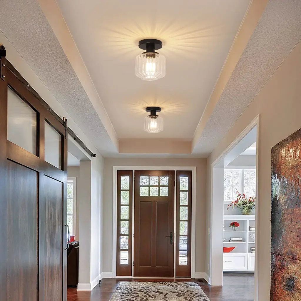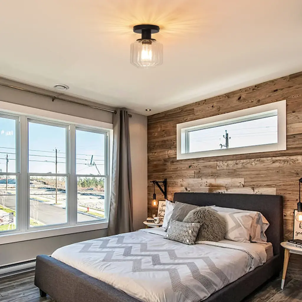 Add a sophisticated touch to your bedroom or living room with this modern Black or Gold drum ceiling light.【Modern Design】: Sleek glass drum shade available in Black or Gold finish for bright, diffused light.【Easy Semi-Flush Mount】: Easy installation creates a clean, low-profile look on ceilings in dry locations, ideal for illuminating bedrooms, living rooms, and other dry indoor spaces. 【Durable & Certified】: Robust iron construction backed by a reliable 2-year warranty.