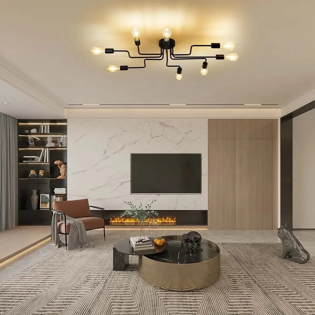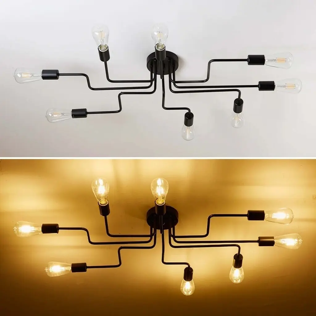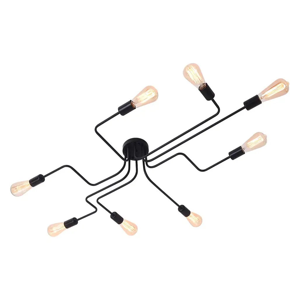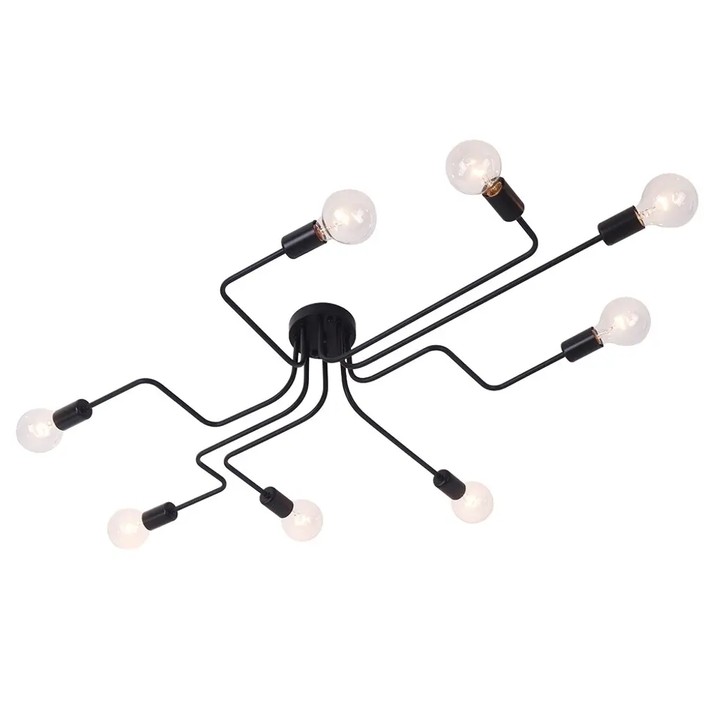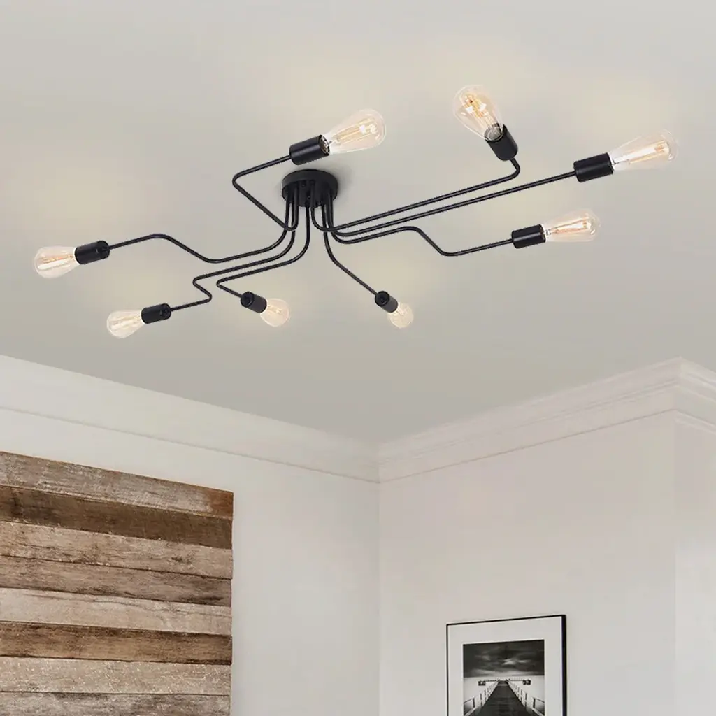 8-Light Modern Black Linear Sputnik Semi-Flush Mount Light Industrial Spider Ceiling Light - Black
