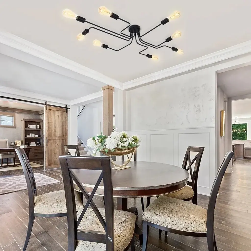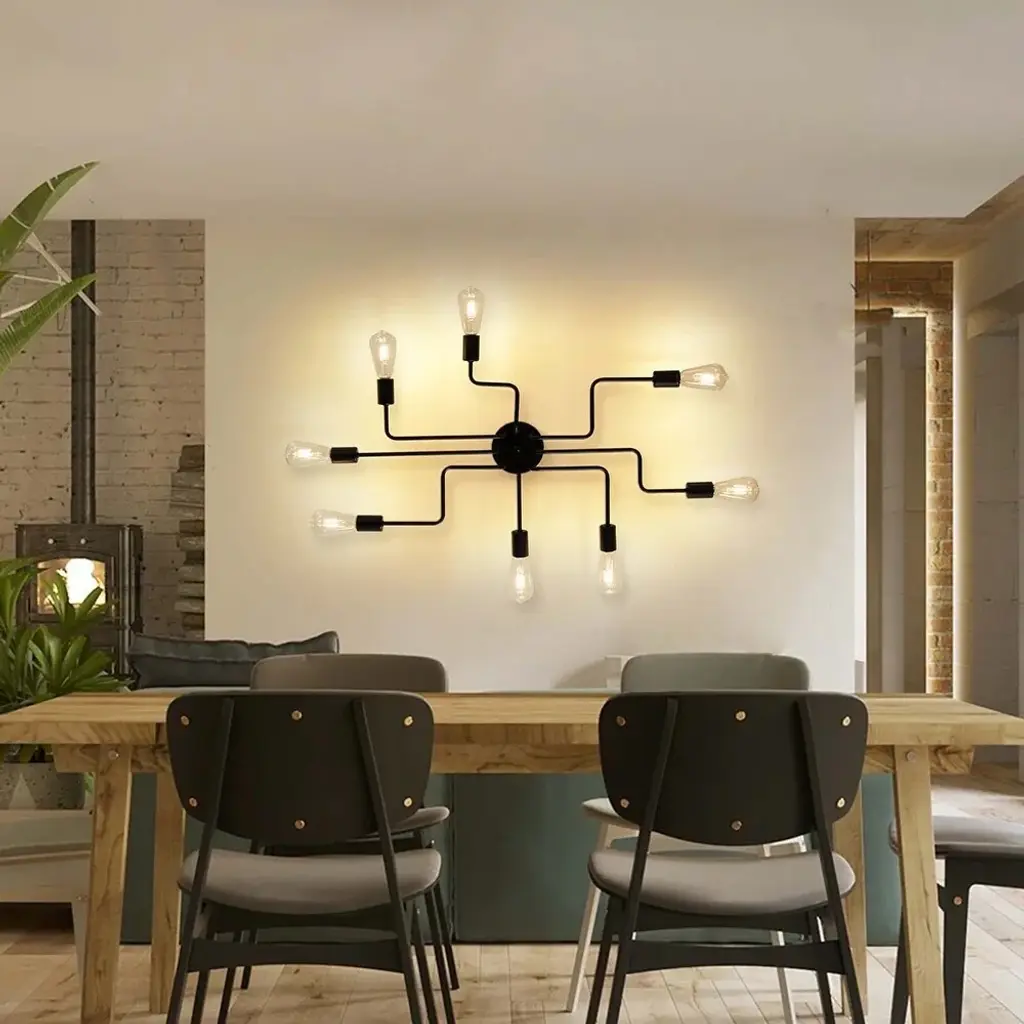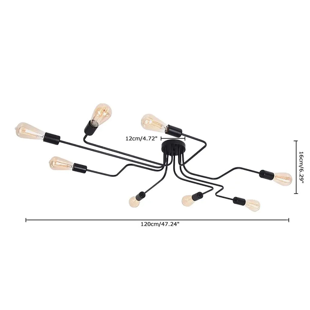 Enhance your home decor with a touch of mid-century modern using this 8-light creative spider linear Sputnik flush mount. The design radiates uniformly from its central base, featuring symmetrical square angles and straight lines that can fill your space with ample lighting. Product Details Dimensions: (see image gallery for dimensional drawing)