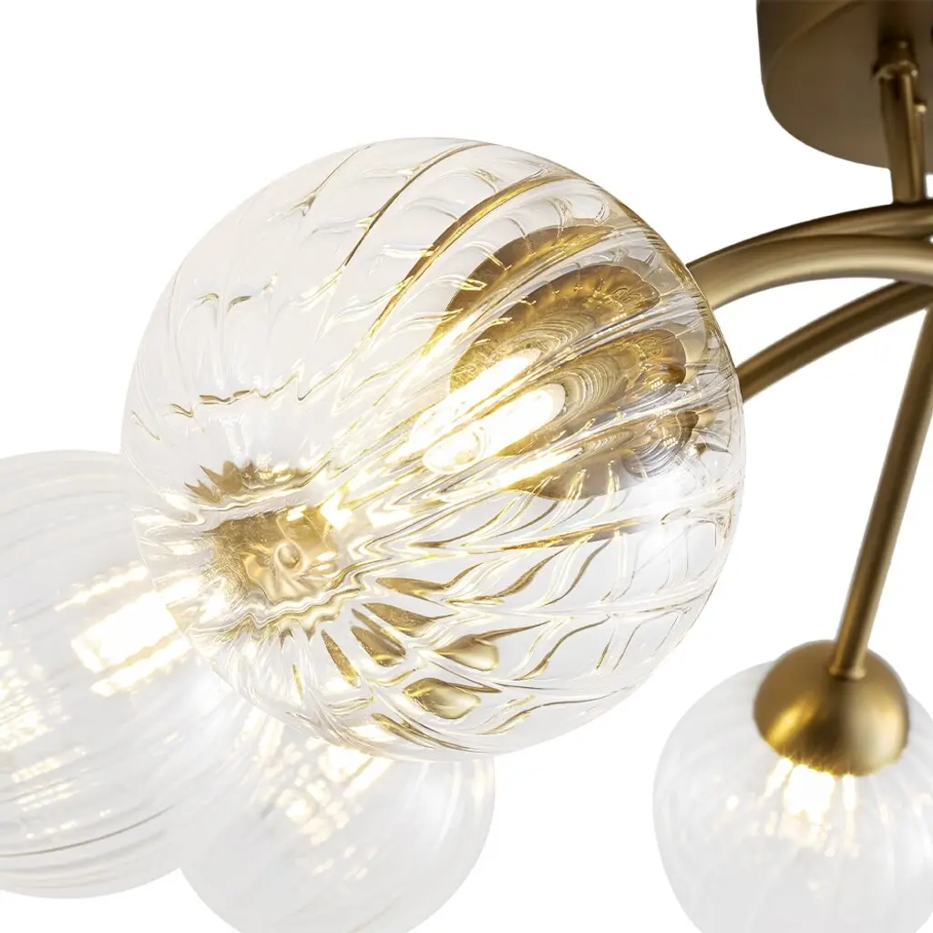 8-Light Modern Pleated Glass Globe Semi-Flush Mount - 27.0in - Gold