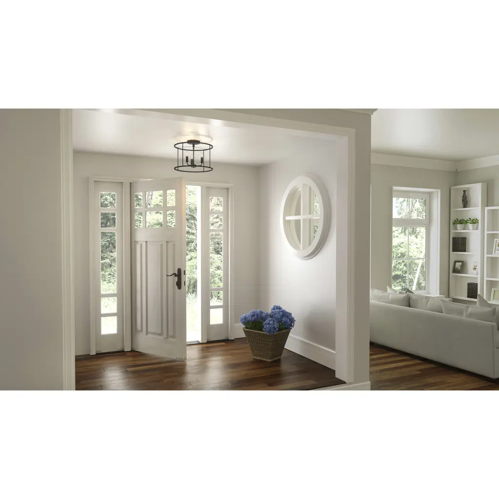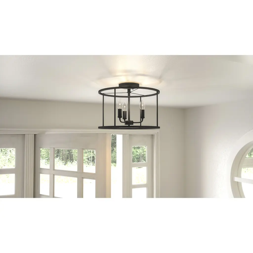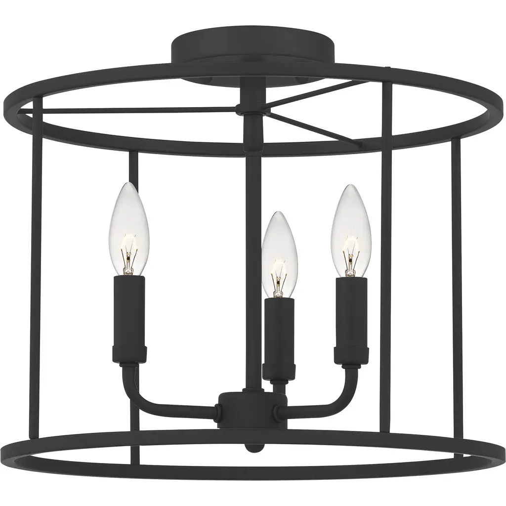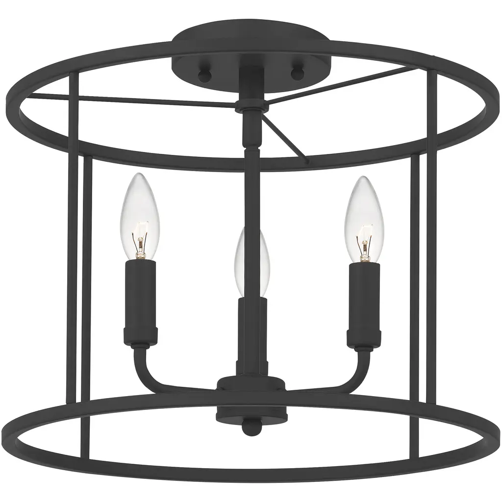 Abner 3 Light 14 Inch Matte Black Semi-Flush Mount Ceiling Light