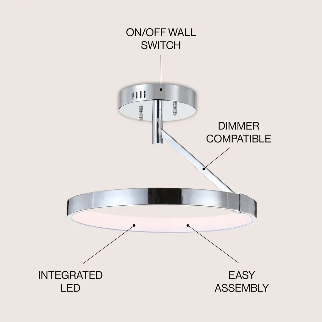 Ajax 17.5" Dimmable Integrated Led Metal Semi-Flush Mount, Chrome By Jonathan Y - Chrome