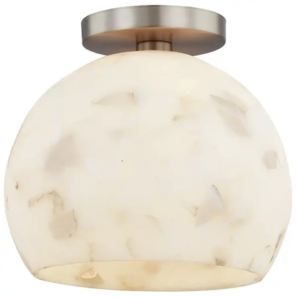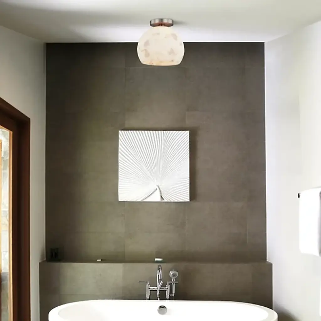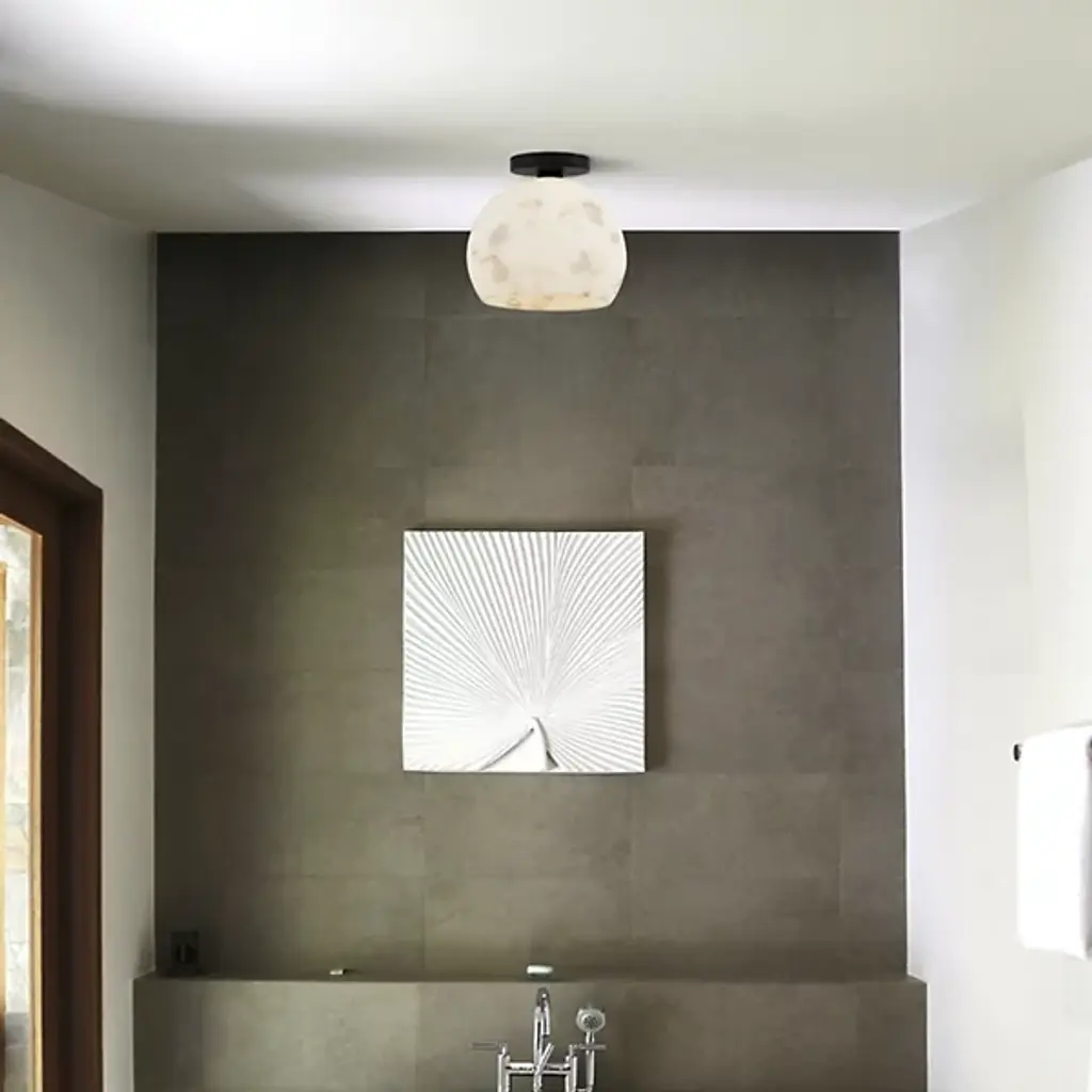 Introduce a touch of sophistication to your space with our Alabaster Rocks Globe Semi-Flushmount from Justice Design Group. Inspired by the Modern style, this semi-flushmount is designed with the finest Alabaster Rocks giving it that exquisite look. Its metal frame adds an extra touch of durability. This semi-flushmount is ideal for a range of rooms in your home, including the living room, hallway, entryway, dining room, kitchen, bedroom, or your home office, lending a vibrant glow to all corners.