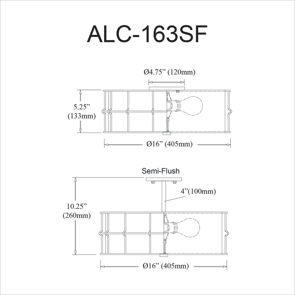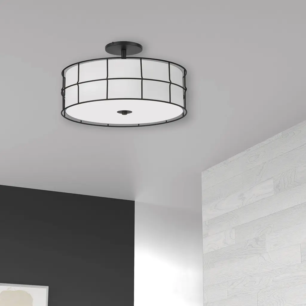 Alcala 3 Light 16 Inch Matte Black Semi-Flush Mount Ceiling Light