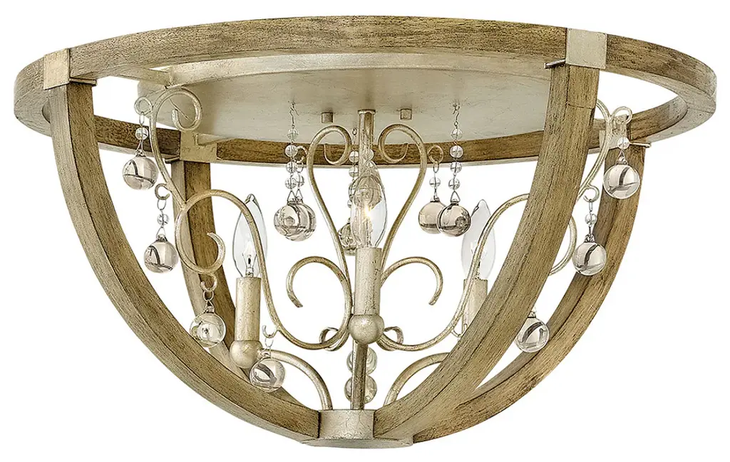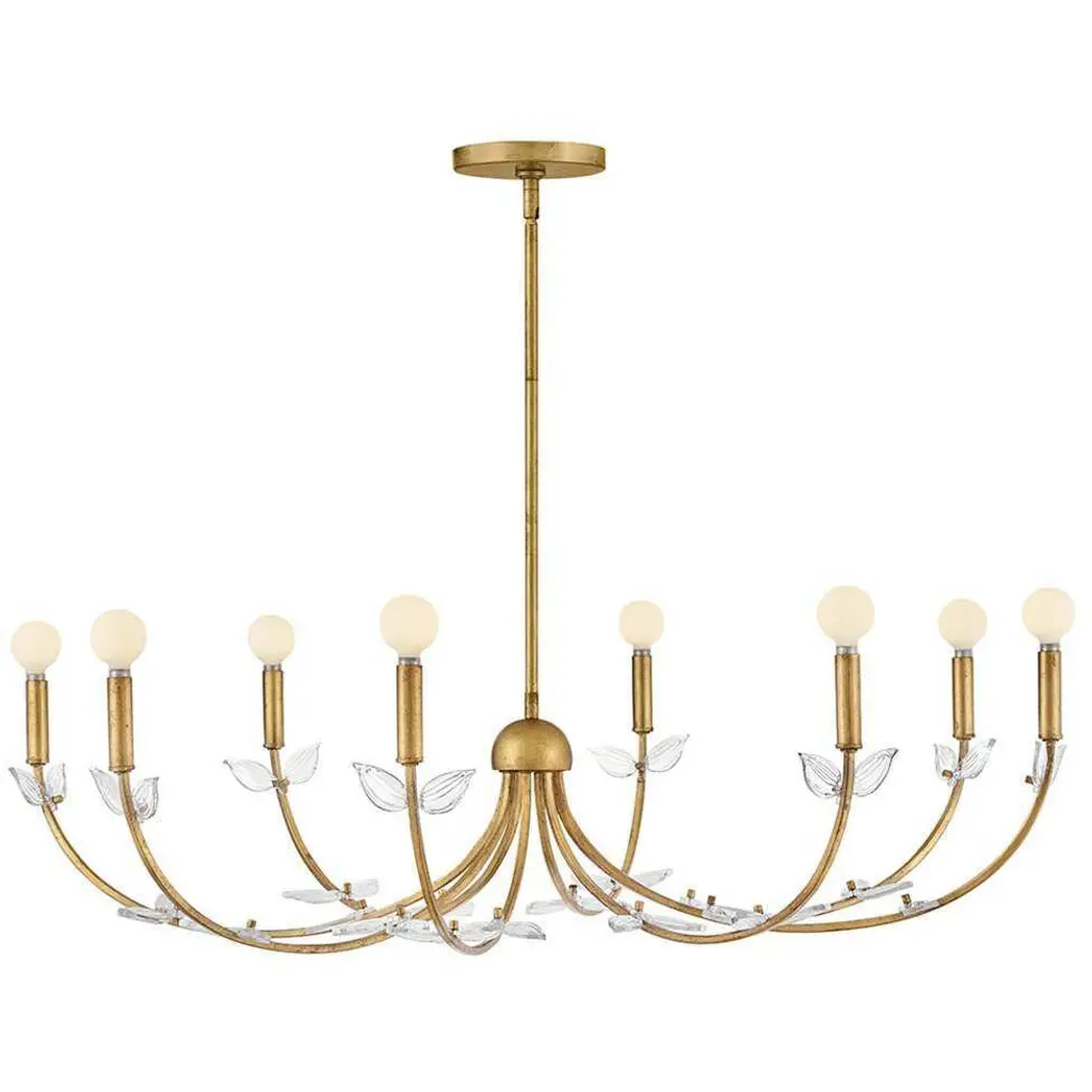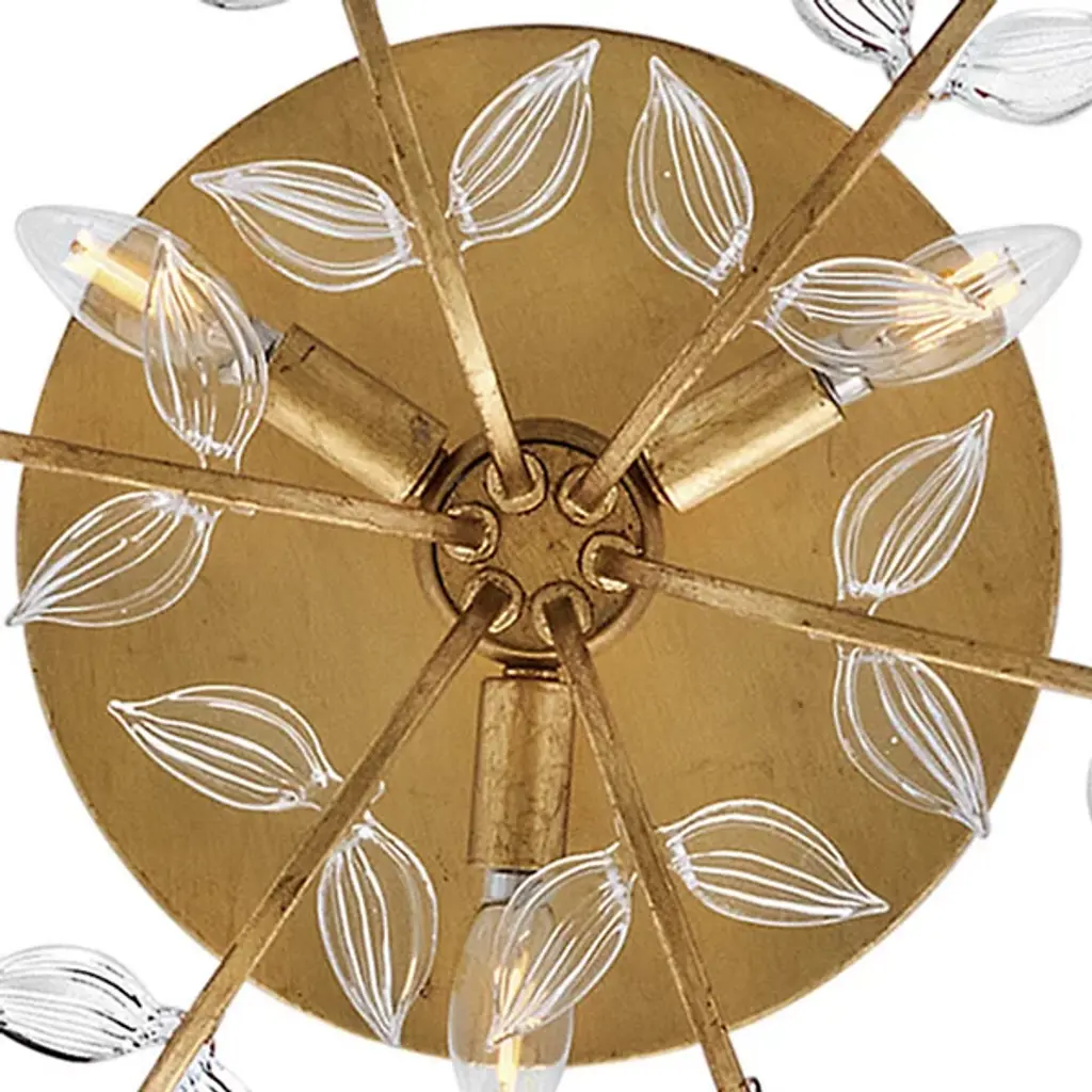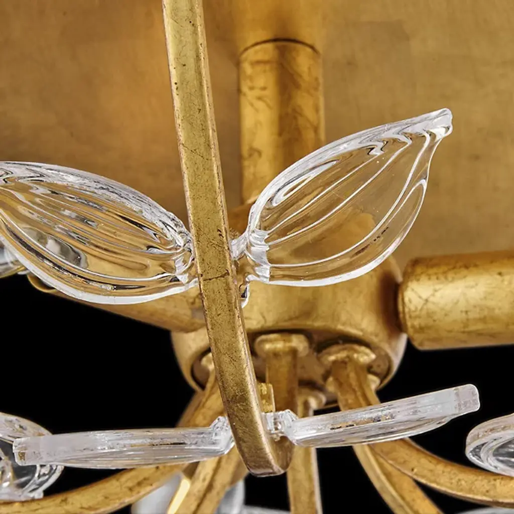 The Aliso Semi-Flushmount from Hinkley creates a garden-inspired canopy with its innovative branching design. Clear pressed glass leaves extend from curved metal stems, creating a naturalistic pattern across the ceiling. Unlike conventional ceiling fixtures that appear static, this design introduces movement through its organic arrangement of stems and leaves. The central light source radiates outward, illuminating each glass element to create a vibrant play of brightness and shadow. The multi-directional arrangement of stems ensures that light distributes evenly throughout the space while maintaining a cohesive design.