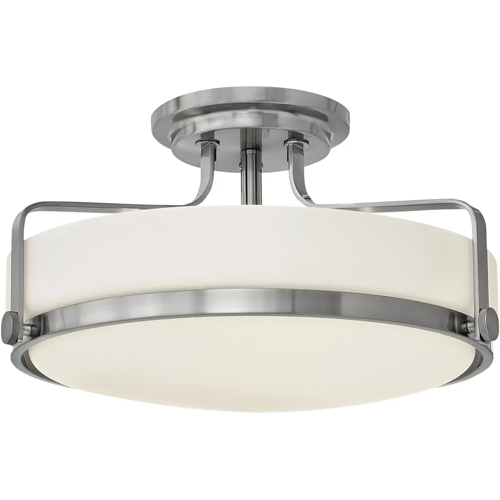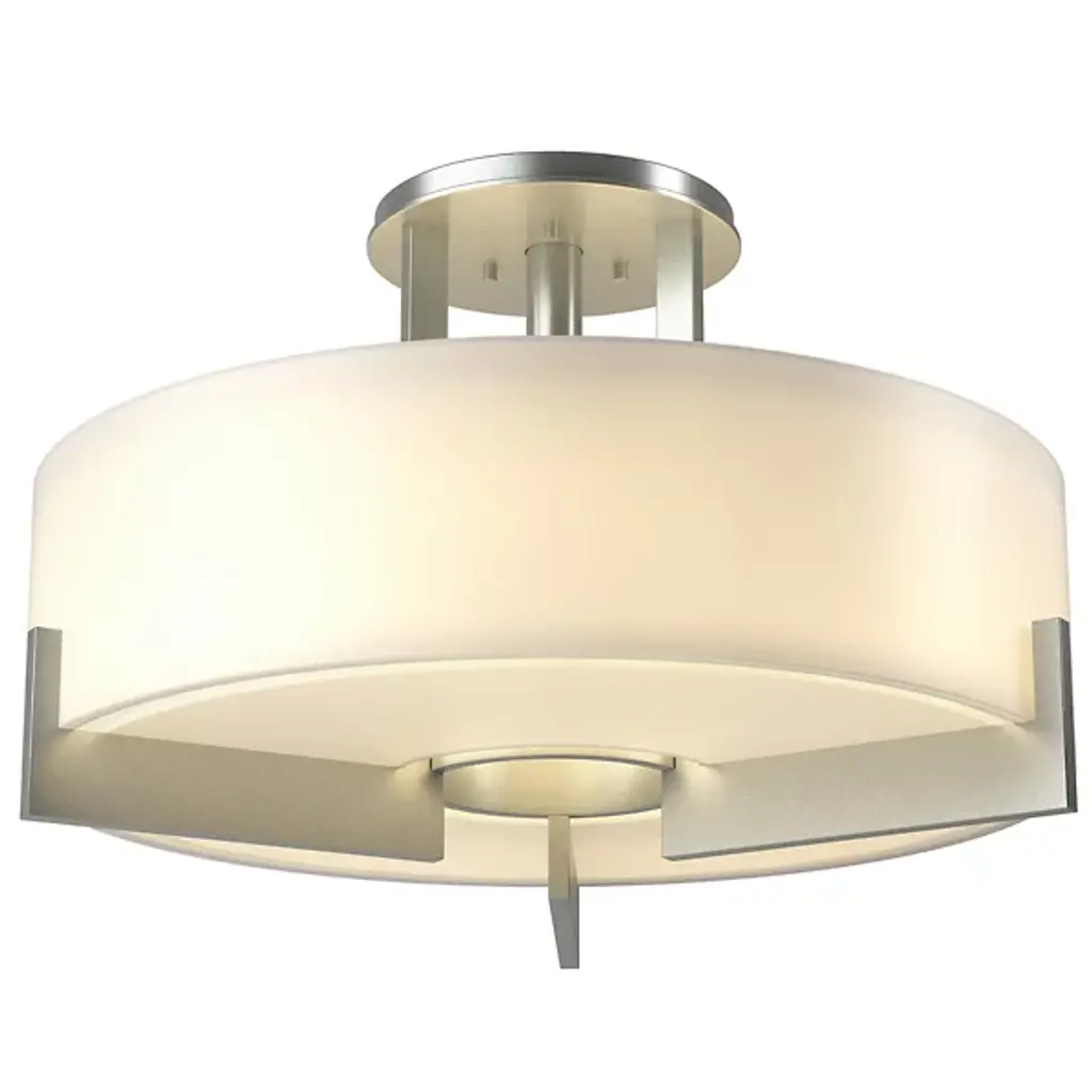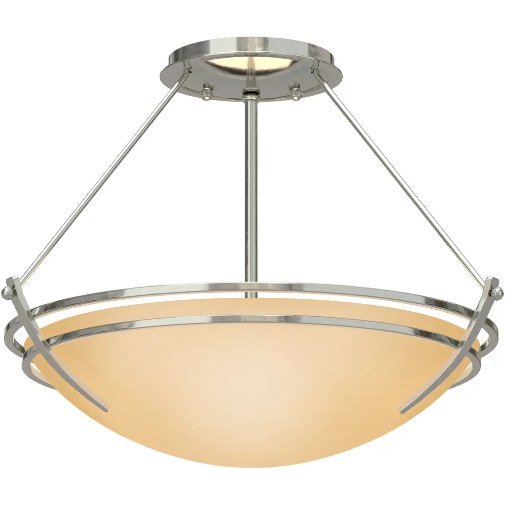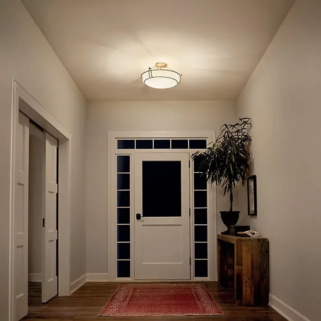 The Alkire Semi-Flushmount form Kichler has transitional style rooted in minimalist tradition. The opaque Glass shade is suspended from the canopy with “hook and eye” style metal work, which adds a dash of rustic flair to your design environment. The light is efficiently diffused by the shade, providing essential ambient light that is needed in every room.