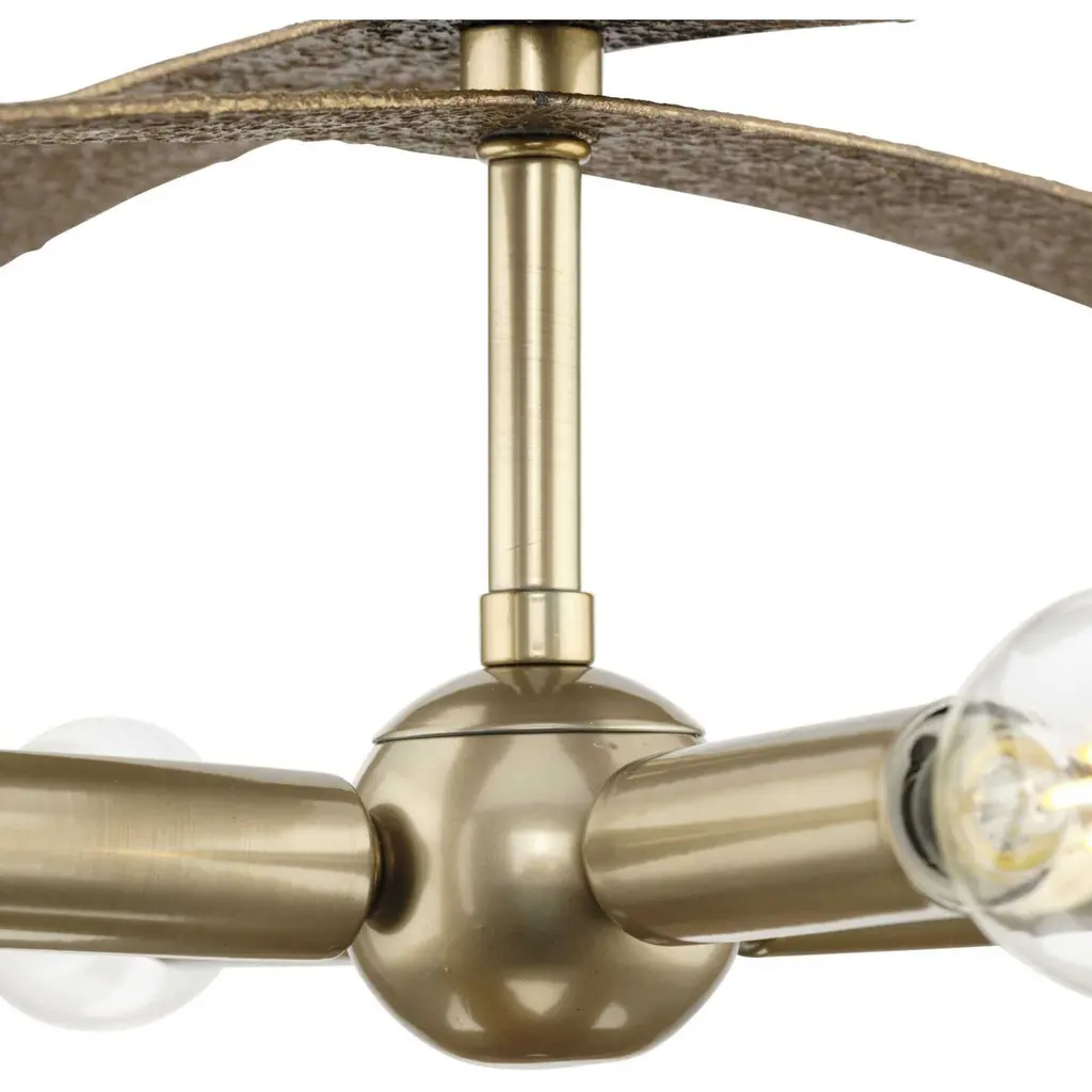 A distinctive foundry texture gives the Allegheny Collection an authentically crafted style. Its artisanal frame is finished in a textured Foundry Gold and surrounds a radiant light cluster in Softy Gold, casting soft illumination throughout the room. This fixture is part of the Progress Lighting Design Series, a lighting collection offering fashionable styles and luxury lighting for the home.