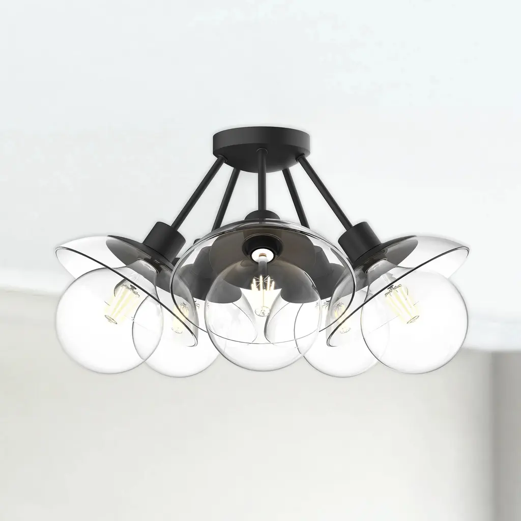 Alora Mood Francesca 5 Light 19.75 Inch Matte Black Semi Flush Mount Ceiling Light