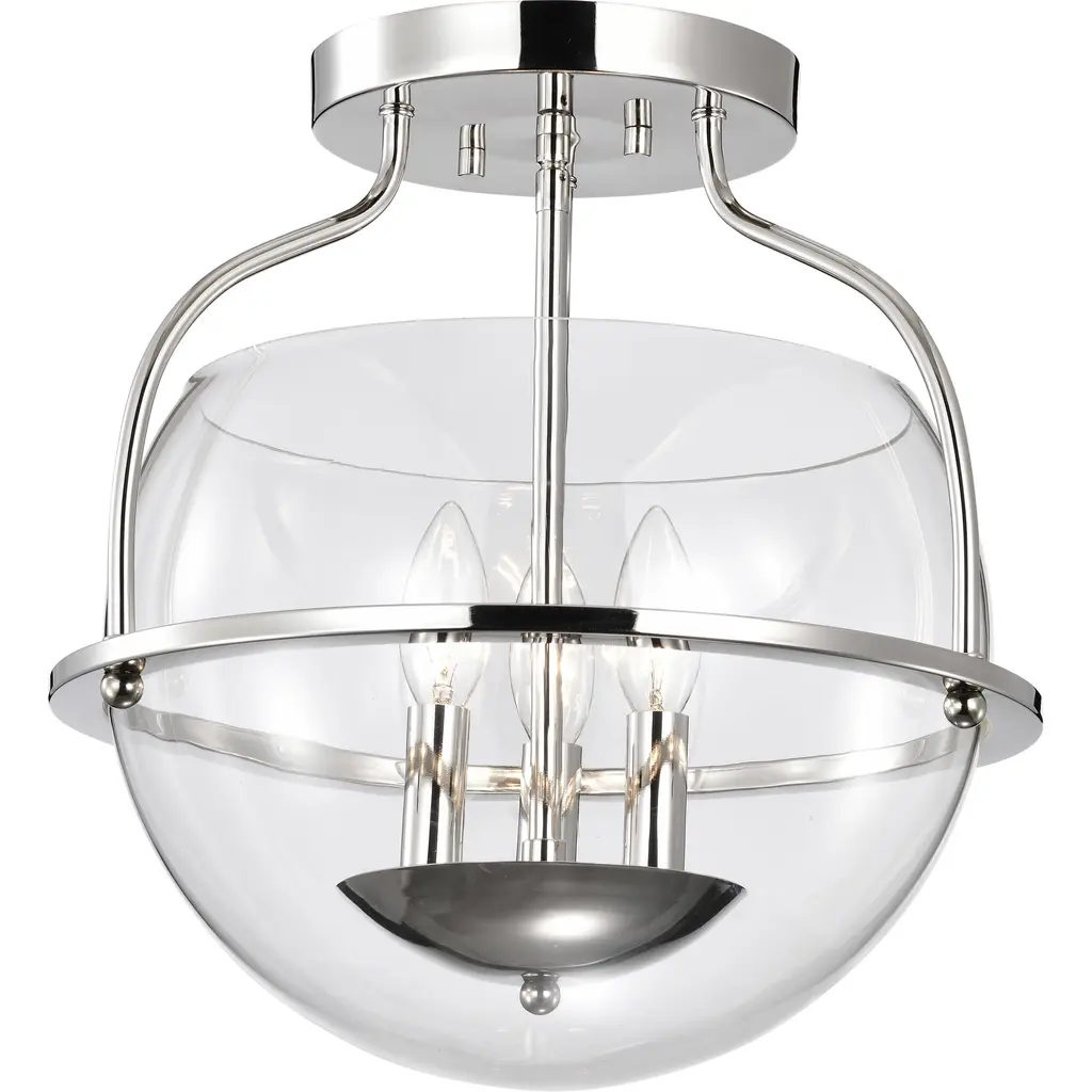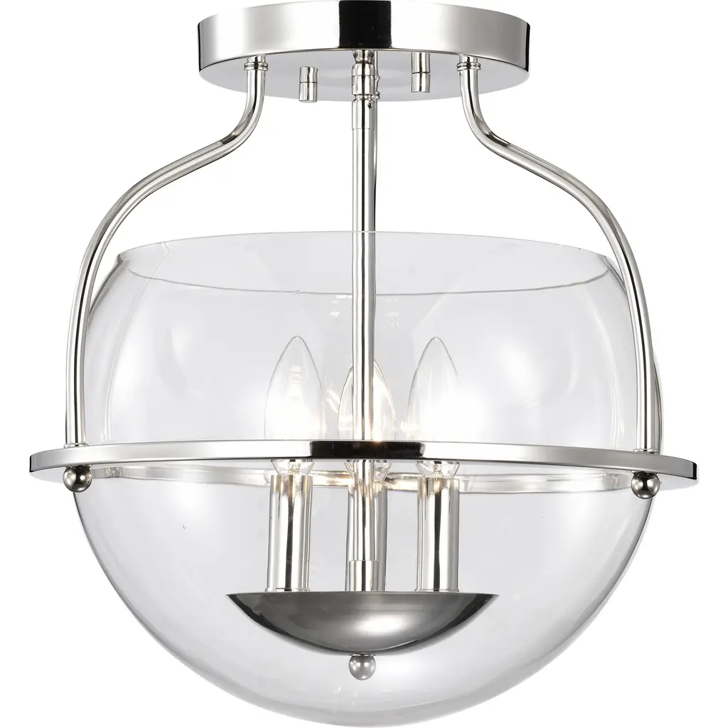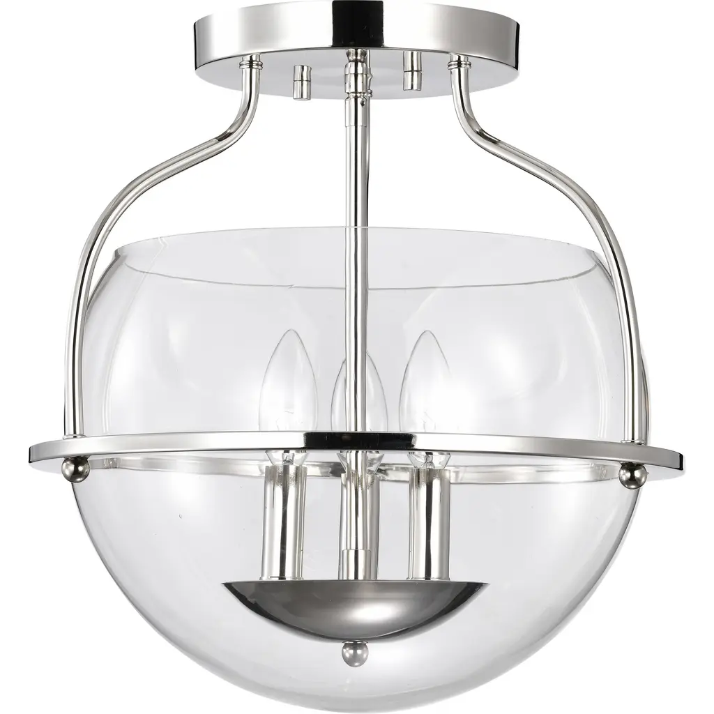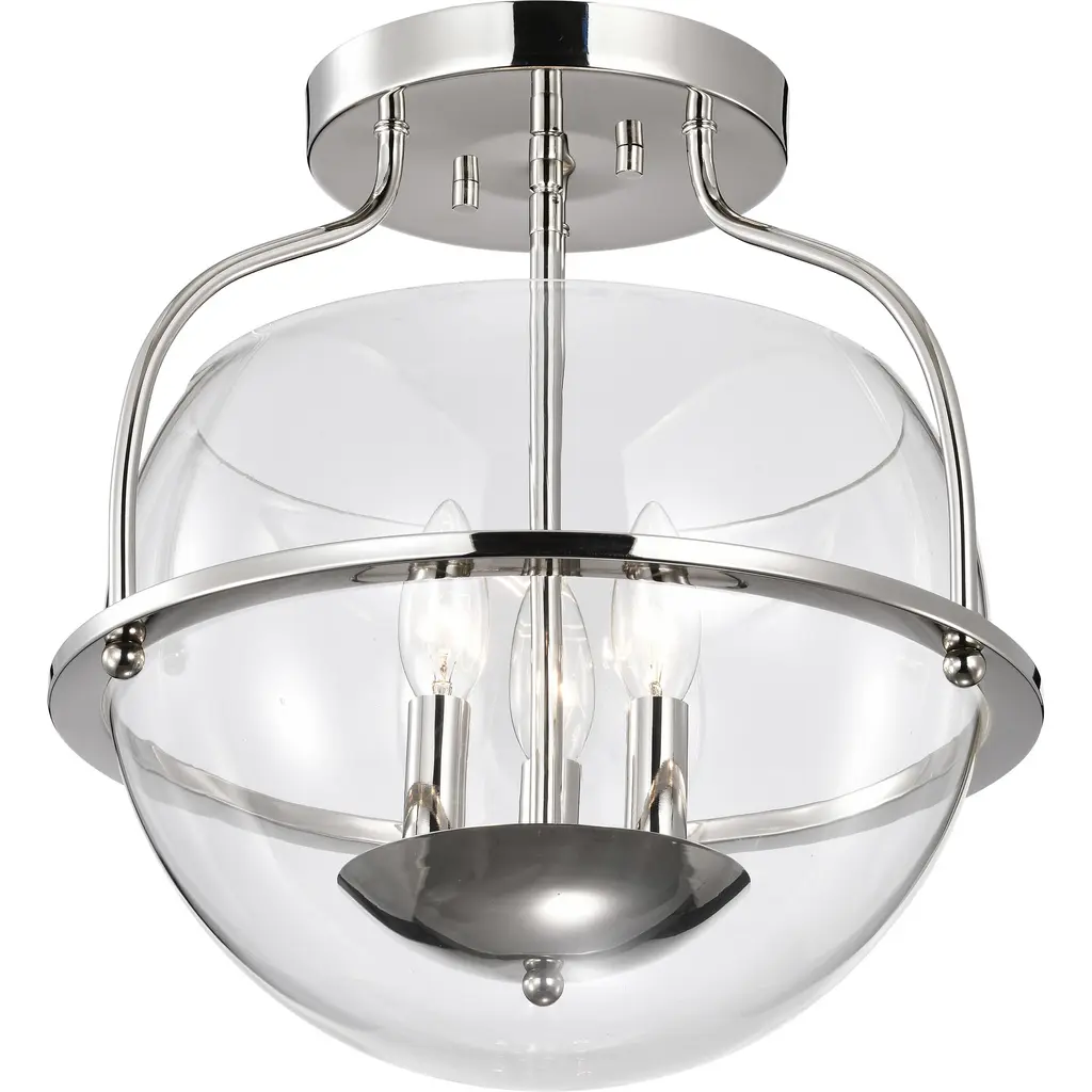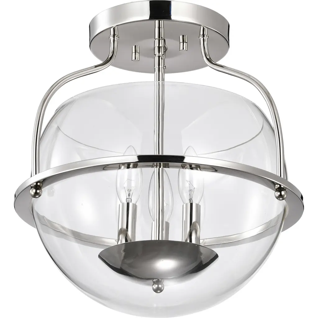 Amado 3 Light Semi Flush Mount; Polished Nickel Finish; Clear Glass