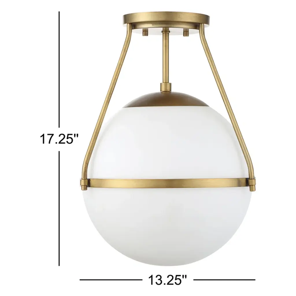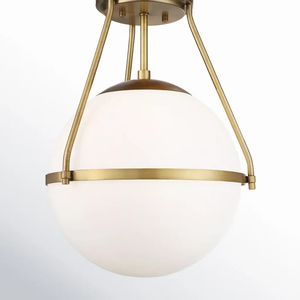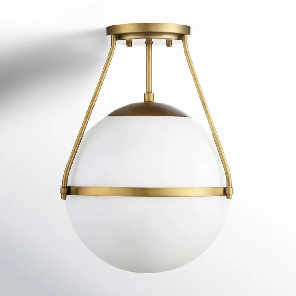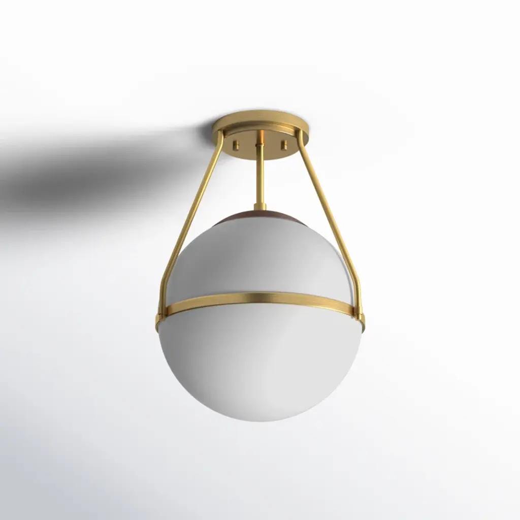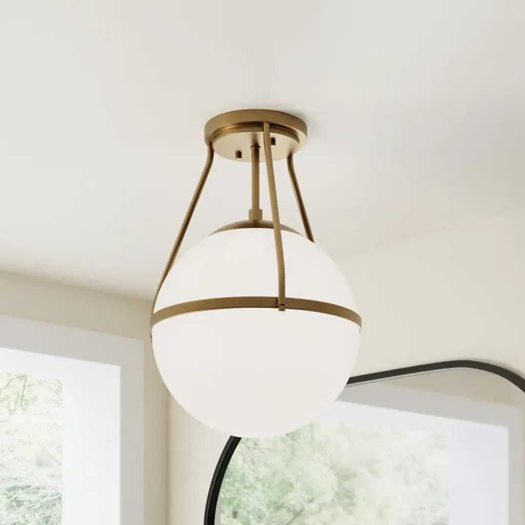 Mid-century vibes for rooms big or small. Our steel semi-flush mount is brimming with mod-inspired looks. The fixture comes in a dynamic finish with a metal band that holds the white glass globe shade in place. Nestled inside is a dimmable bulb, which is sold separately. Its low hanging height makes it a great choice for your entryway, living area, or kitchen nook.
