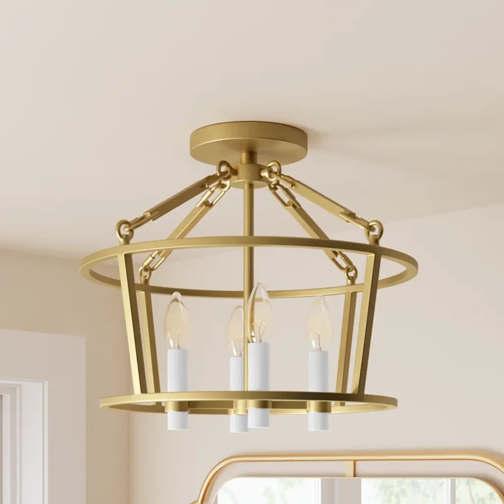 Perfect for a modern farmhouse, updated historic home, or to fit into the modern traditional style, Marston by Chapman & Myers offers an emerging trend of classic design without the fuss and ornate detailing of traditional design. The Marston twenty-light multi-tier chandelier from Chapman & Myers gives the illusion that the candles are floating - each suspended by a simple metal frame. The corners of the brass square tubing give definition to the minimal metal frame. The cream candle covers intersect the frame, revealed both above and below their metal collars.
