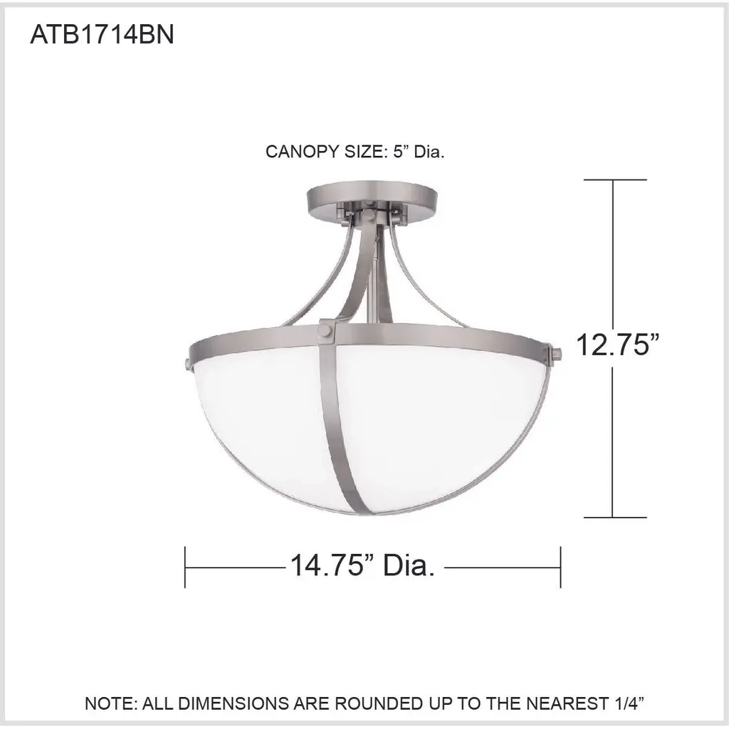 Antebellum 2 Light 14.75 Inch Brushed Nickel Semi-Flush Mount Ceiling Light