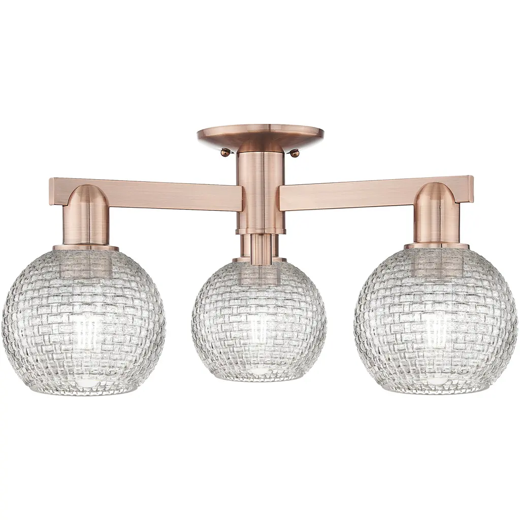 Arcadia Athens 3 Light 23.38 Inch Brushed Satin Nickel Semi-Flush Mount Ceiling Light In Mercury