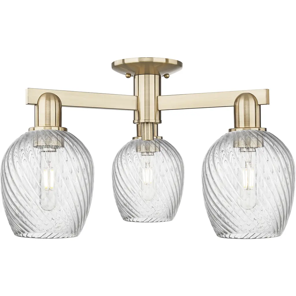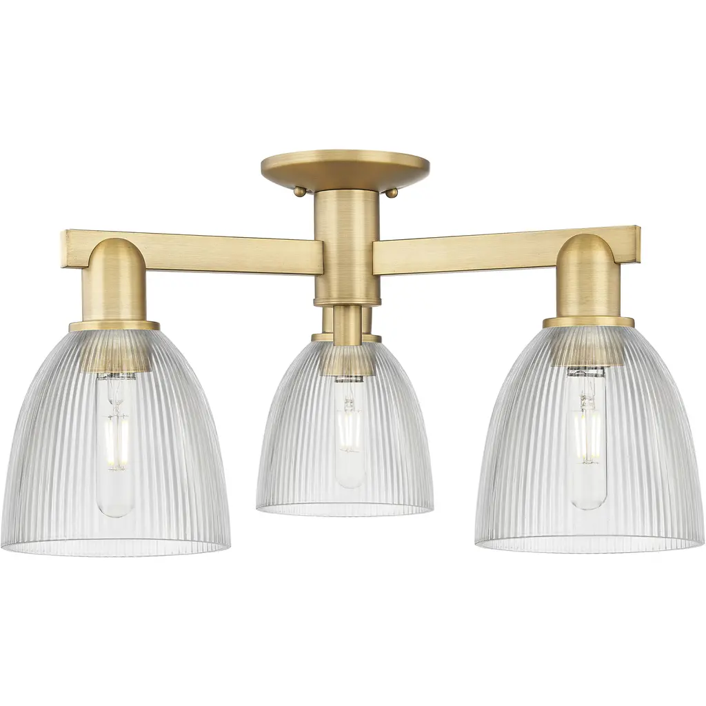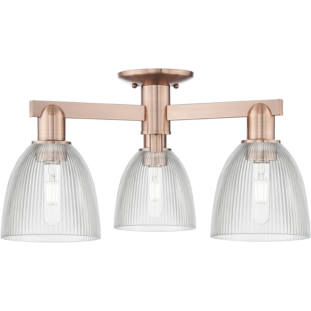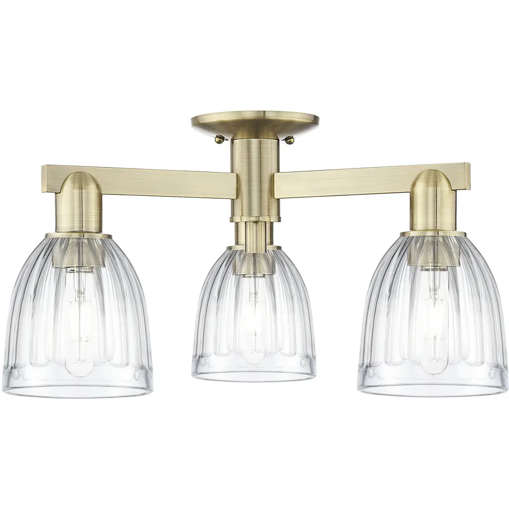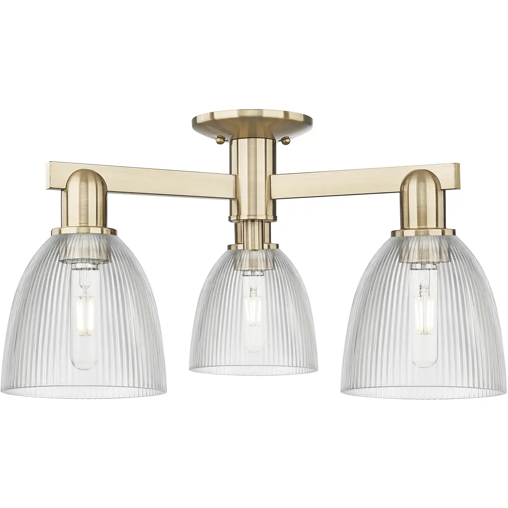 Arcadia Castile 3 Light 23.5 Inch Antique Brass Semi-Flush Mount Ceiling Light In Clear