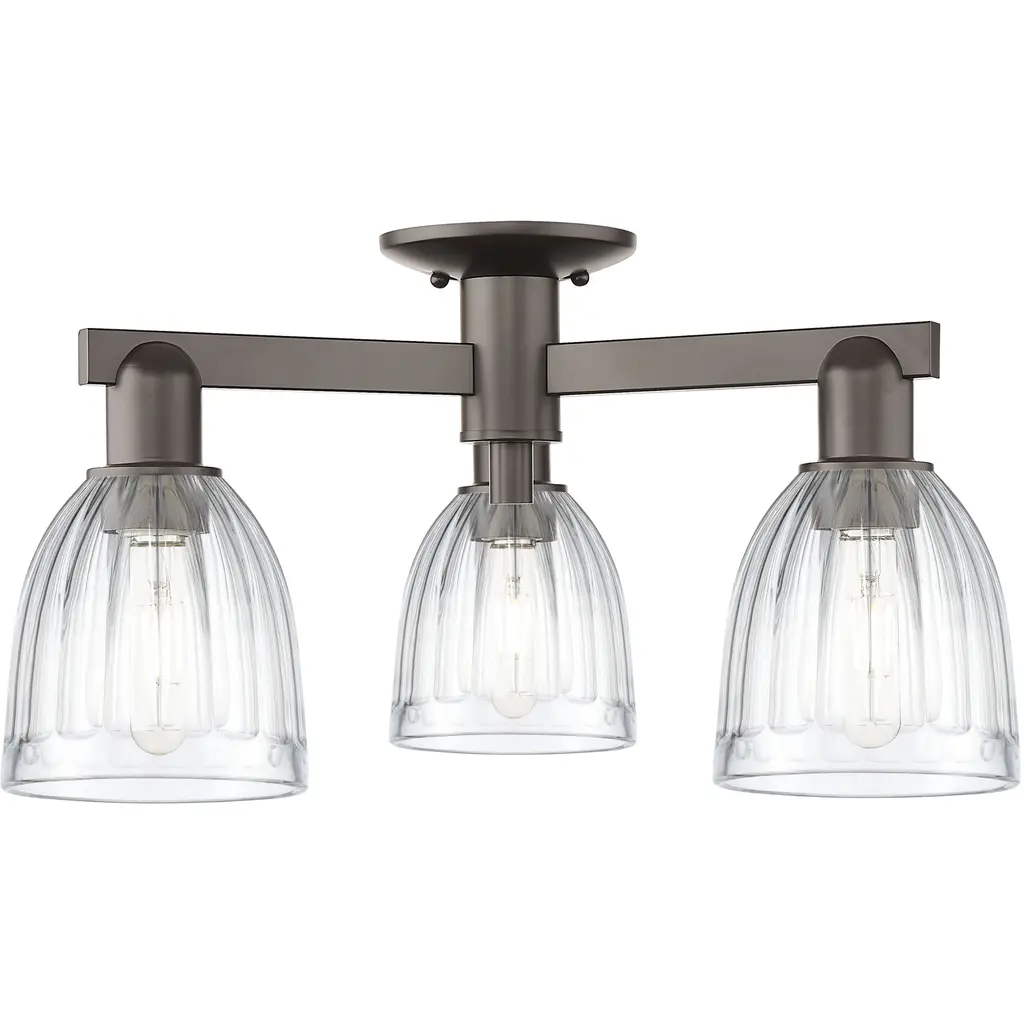 Arcadia Castile 3 Light 23.5 Inch Oil Rubbed Bronze Semi-Flush Mount Ceiling Light In Clear