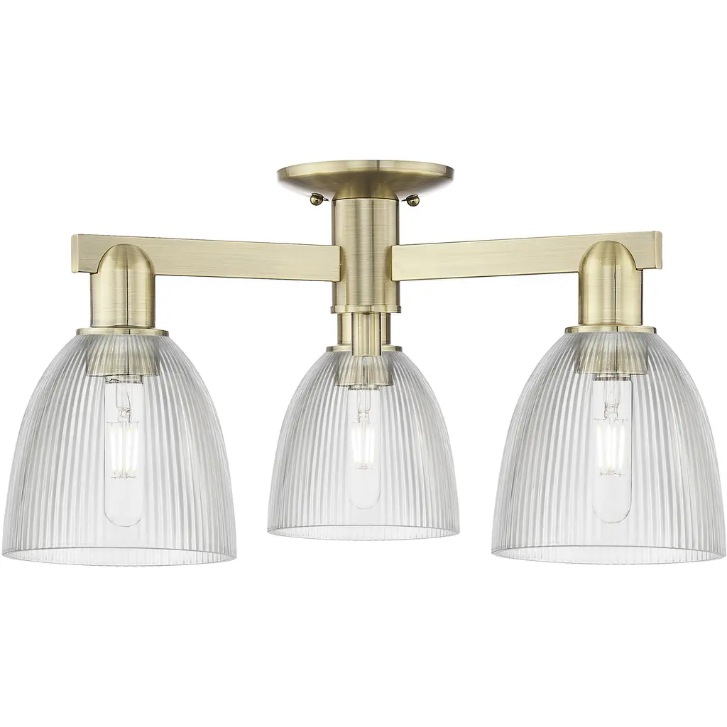 Arcadia Castile 3 Light 23.5 Inch Polished Chrome Semi-Flush Mount Ceiling Light In Clear