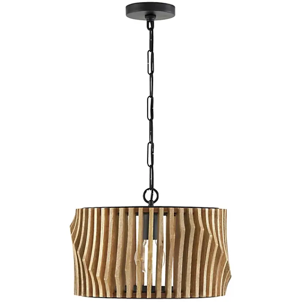 Give your living space a rustic modern look with the Archer Semi-Flushmount / Pendant by Capital Lighting. This light fixture is crafted in a sculptural style that is stunning from every angle. Whether hung as a pendant or semi-flushmount, the artisan-crafted slats of mango wood create the sensation of motion in a visually intriguing wave grounded by a framework of durable metal.