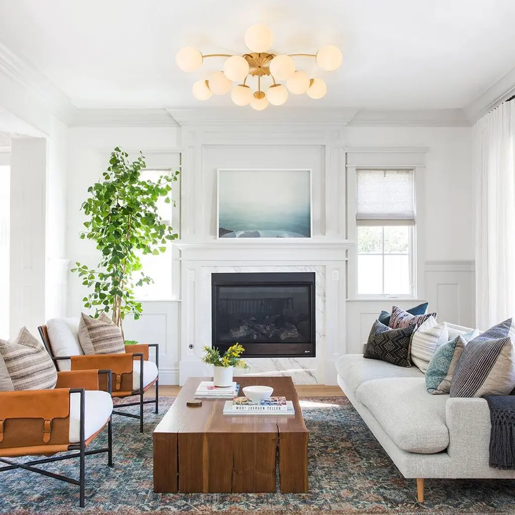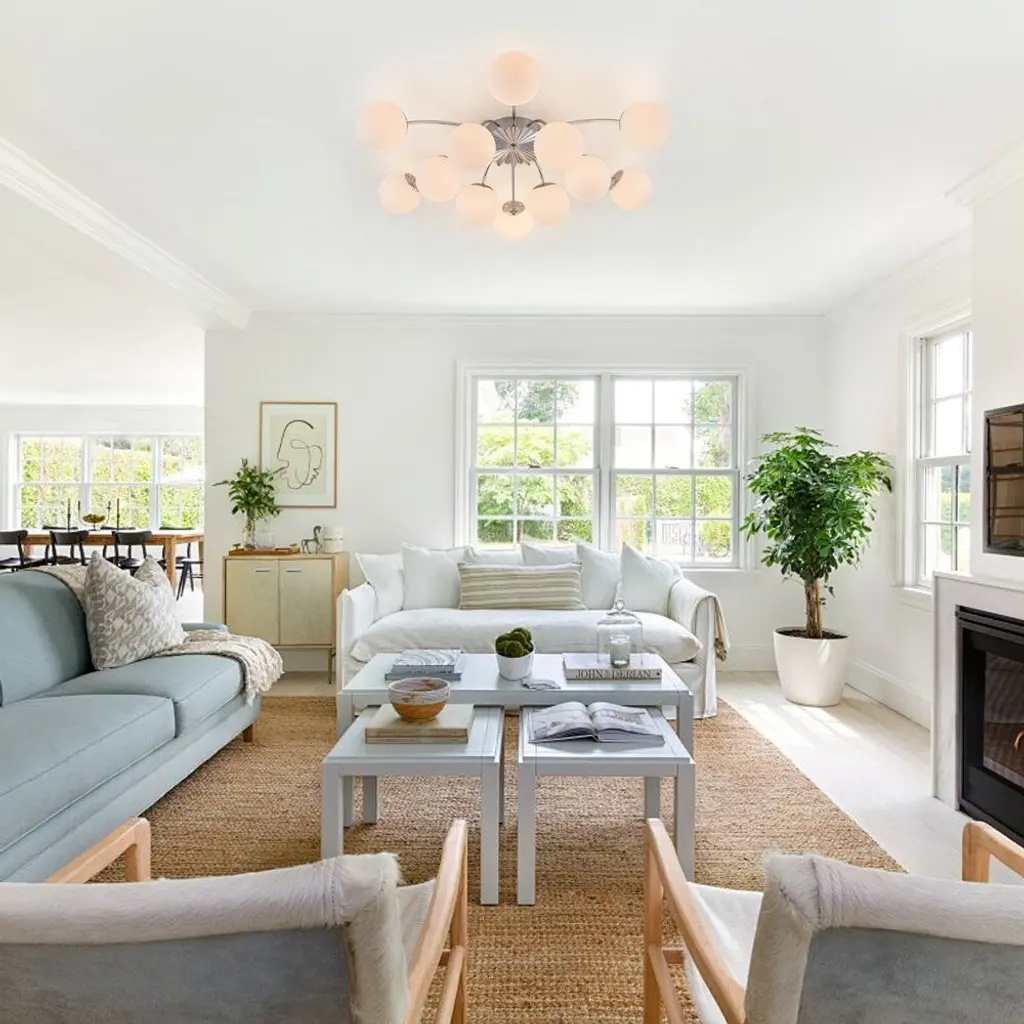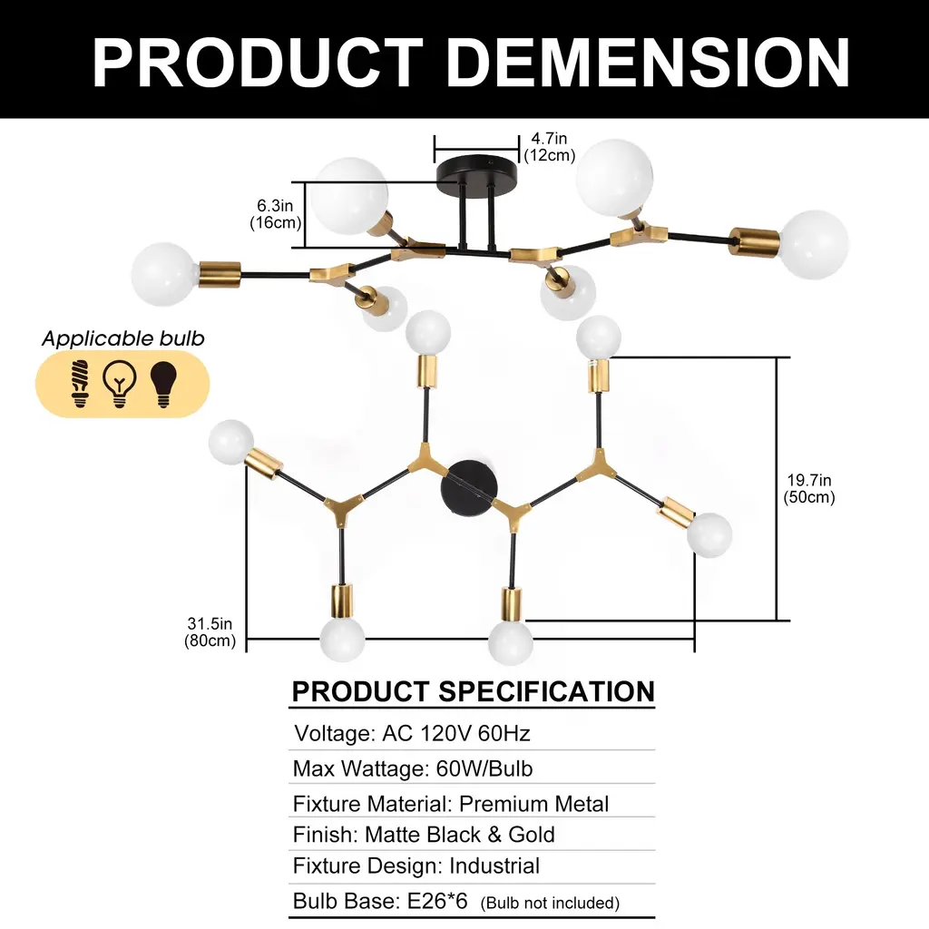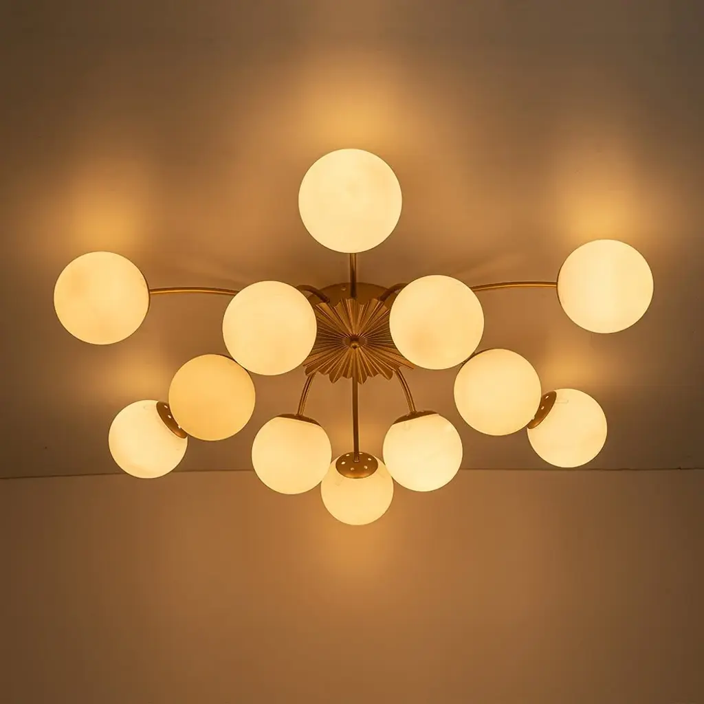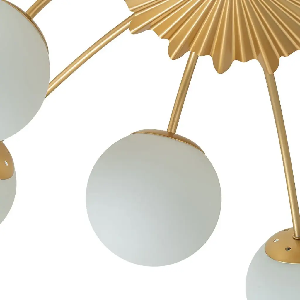 Upgrade your space with the dazzling Art Deco 12-light star-night fireworks matte glass globe semi-flush mount. This stunning fixture features twelve matte glass globes, resembling a burst of fireworks, creating a spectacular display of light and shadow. The sleek, geometric frame in a gold or chrome finish adds a touch of vintage glamor, making it a perfect centerpiece for any room. Experience the enchantment of a starlit night, where elegance and modernity converge in a breathtaking design.Features:Dimensions: