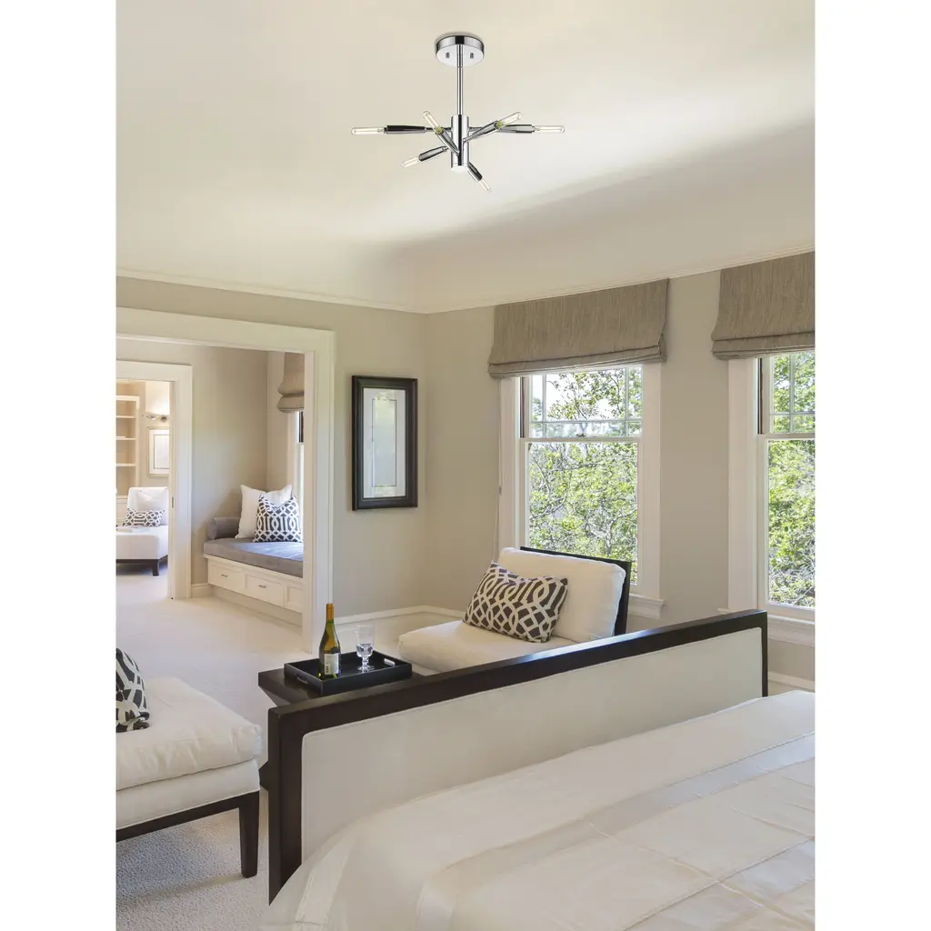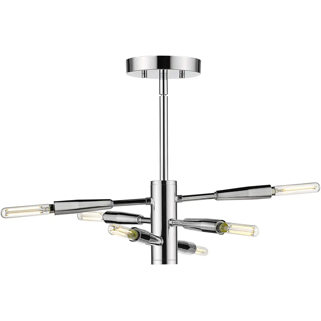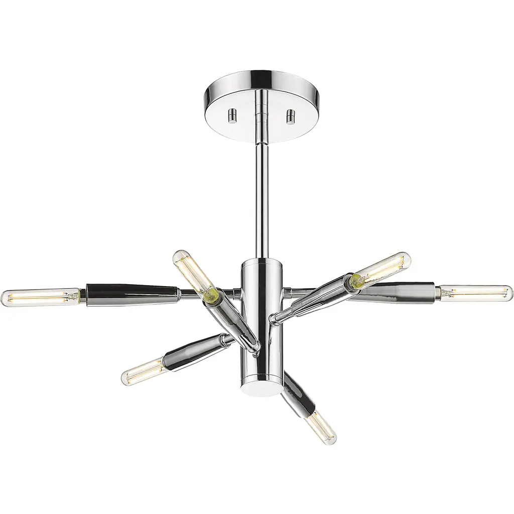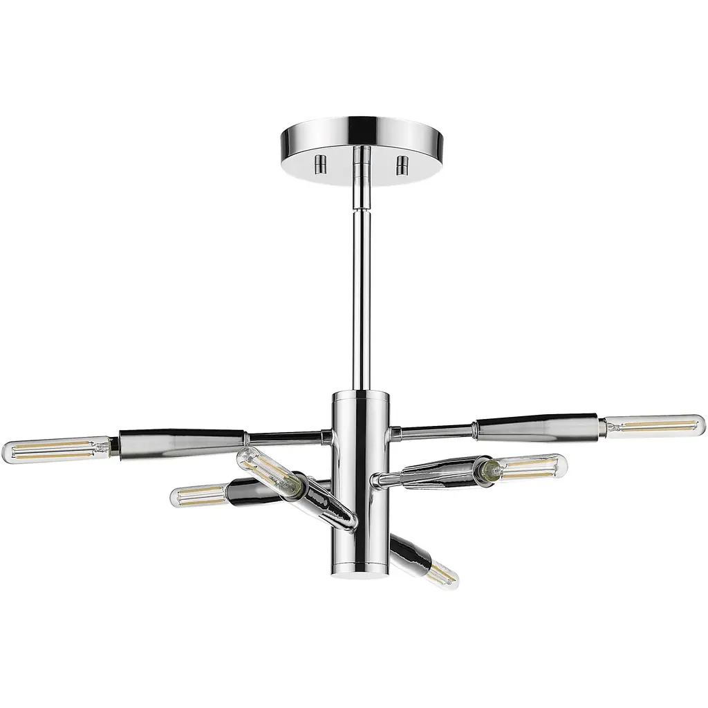 Step into a futuristic vibe as you choose illumination for your modern living spaces. This six-light semi-flushmount ceiling light from the Ascension collection delivers a sleek modular look with baton-style arms that rotate to a customized position. Made of brilliant chrome finish steel, this inspiring fixture may be further personalized with the custom optional bulbs of your choosing.