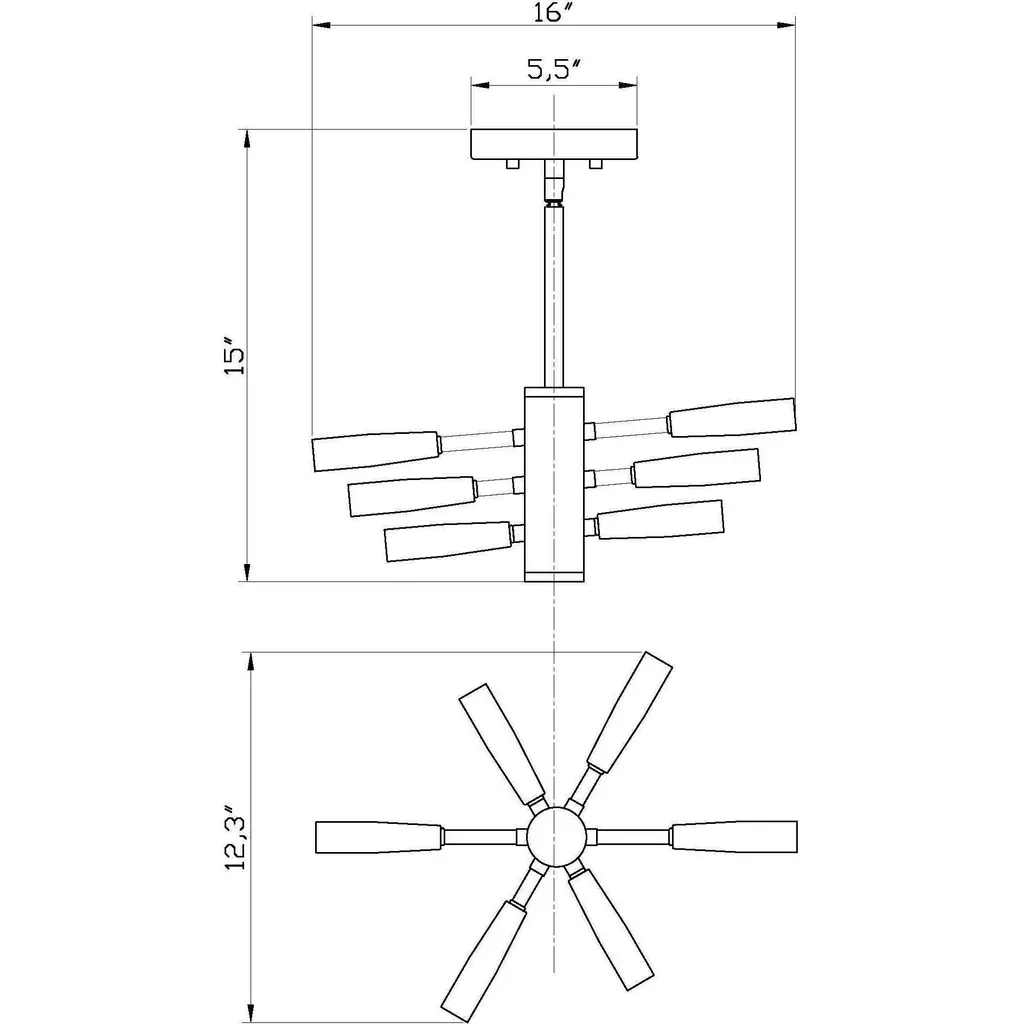 Ascension 6 Light 12.5 Inch Chrome Semi Flush Mount Ceiling Light