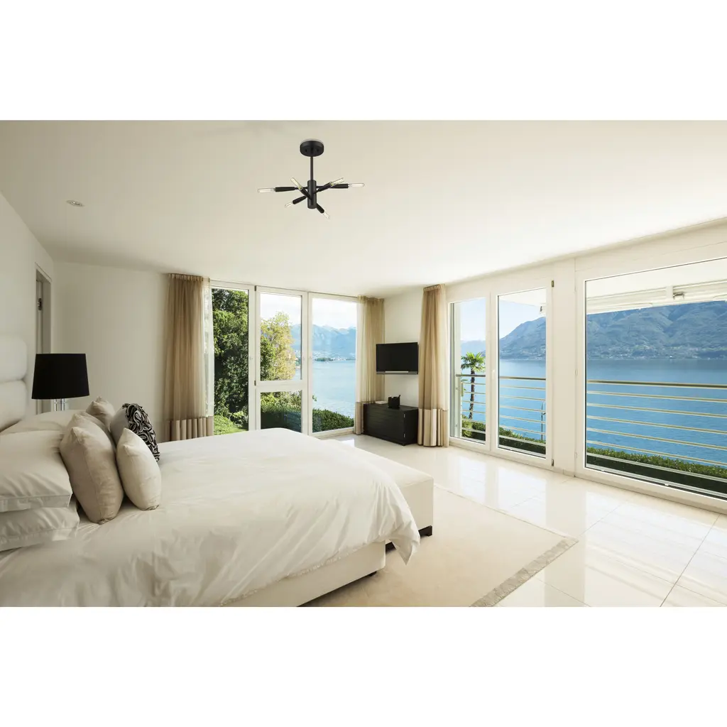 Step into a futuristic vibe as you choose illumination for your modern living spaces. This six-light semi-flushmount ceiling light from the Ascension collection delivers a sleek modular look with baton-style arms that rotate to a customized position. Made of bold matte black finish steel, this inspiring fixture may be further personalized with the custom optional bulbs of your choosing.
