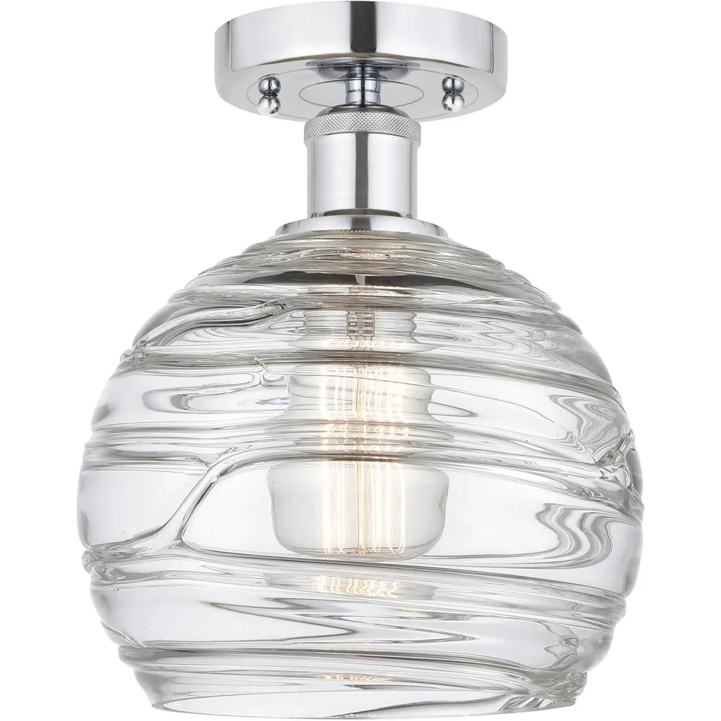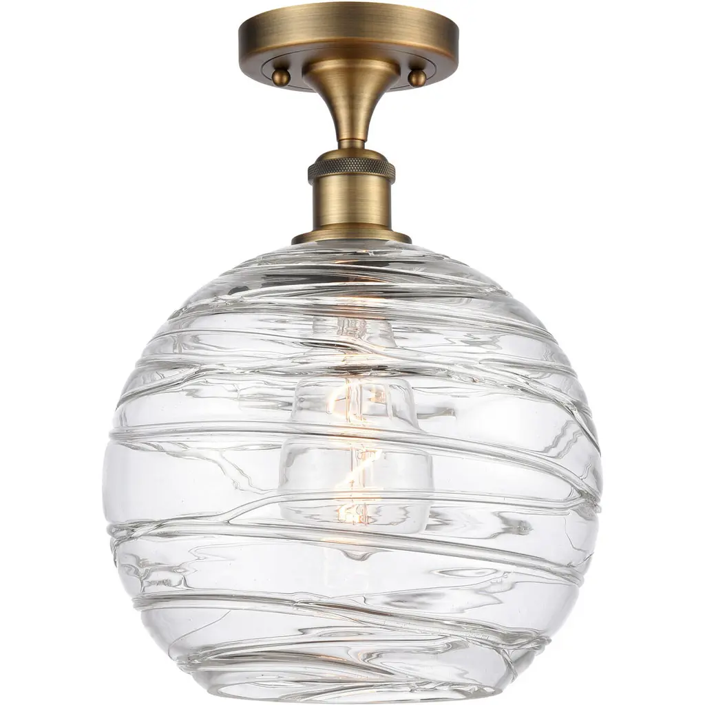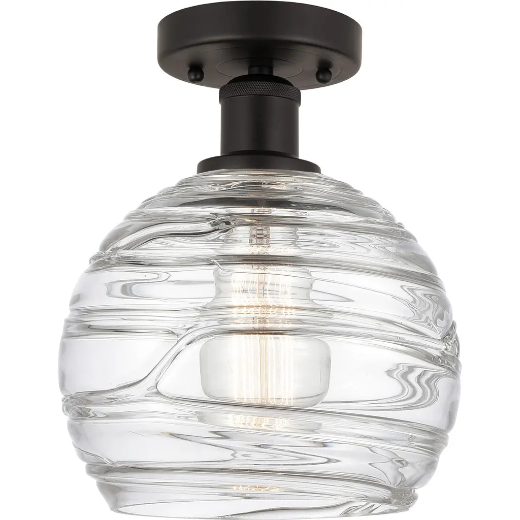 Athens Deco Swirl - 1 Light 8" Semi-Flush Mount - Antique Copper Finish - Clear Deco Swirl Glass Shade