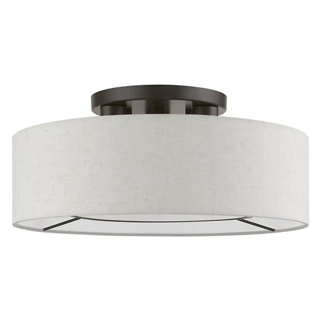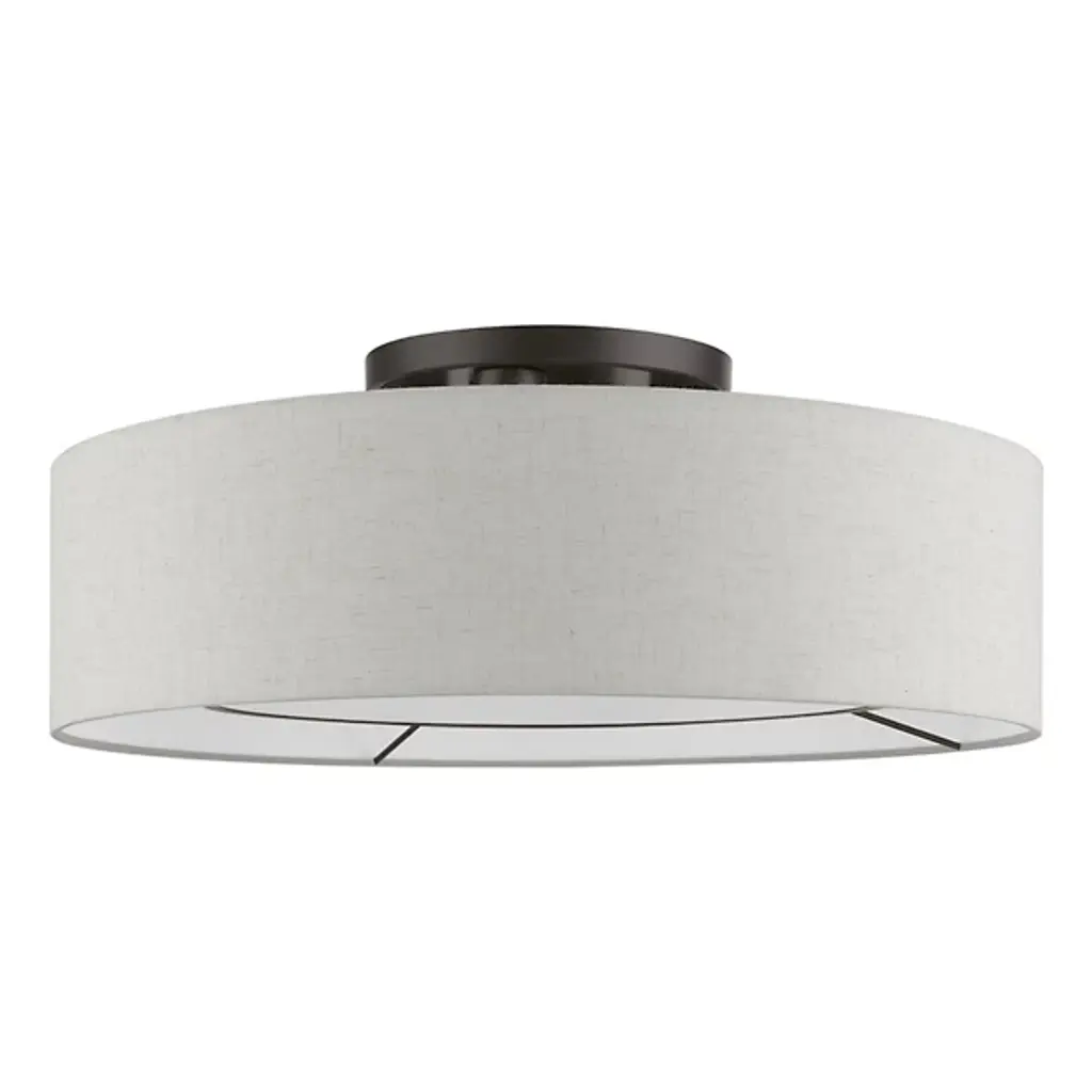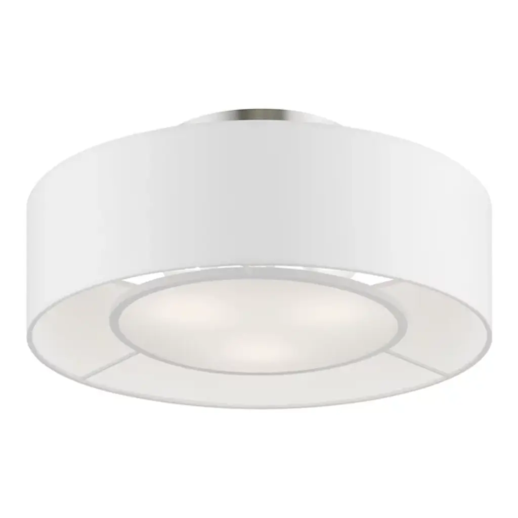 The Aurora Semi-Flushmount from Alder & Ore presents a clean, crisp look and contemporary appeal. The handcrafted fabric hardback shade with a white interior cuts glare to the sides, offering a diffused warm light. The lamping is further gentled by a translucent diffuser, the drum shade adding character to this handsomely styled fixture. It will serve well in the living room, dining room, and bedroom, tastefully elevating their style.