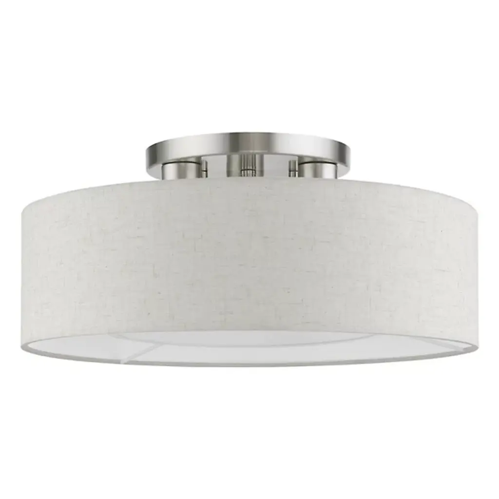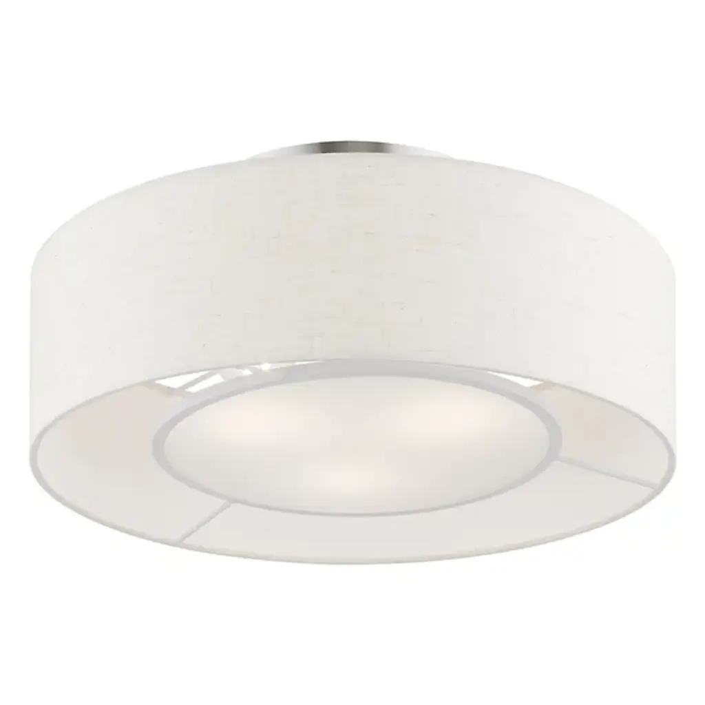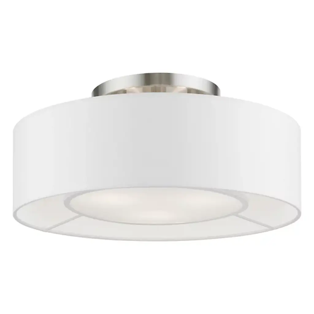 The Aurora Semi-Flushmount from Alder & Ore presents a clean, crisp look and contemporary appeal. The handcrafted fabric hardback shade with a white interior cuts glare to the sides, offering a diffused warm light. The lamping is further gentled by a translucent diffuser, the drum shade adding character to this handsomely styled fixture. It will serve well in the living room, dining room, and bedroom, tastefully elevating their style.