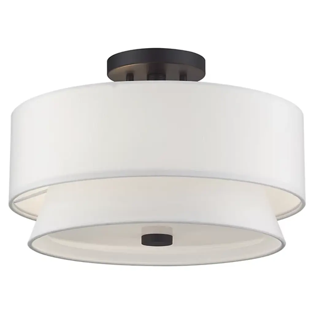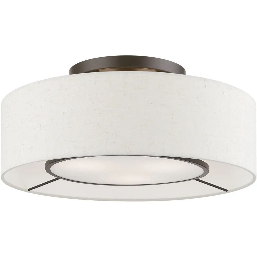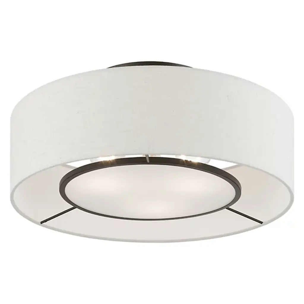 The Aurora Semi-Flushmount from Alder & Ore presents a clean, crisp look and contemporary appeal. The handcrafted fabric hardback shade with a white interior cuts glare to the sides, offering a diffused warm light. The lamping is further gentled by a translucent diffuser, the drum shade adding character to this handsomely styled fixture. It will serve well in the living room, dining room, and bedroom, tastefully elevating their style.