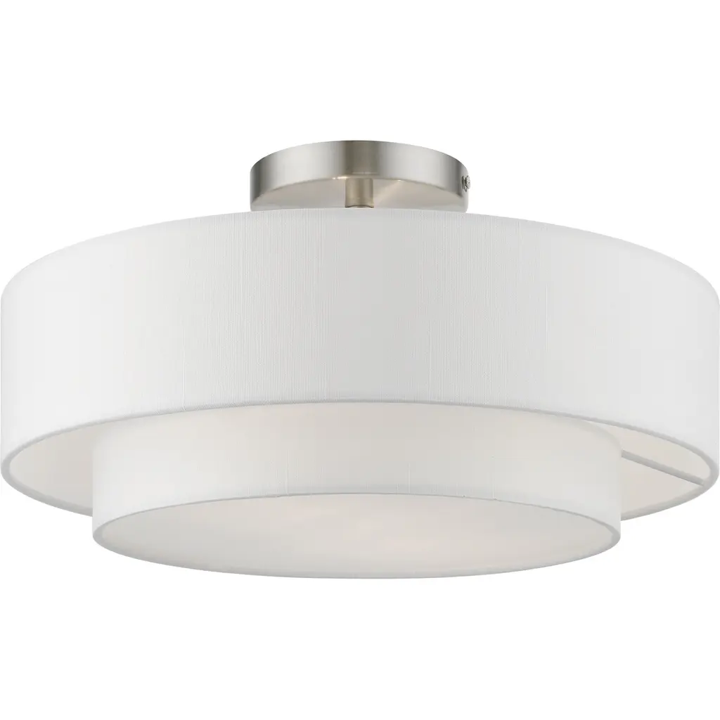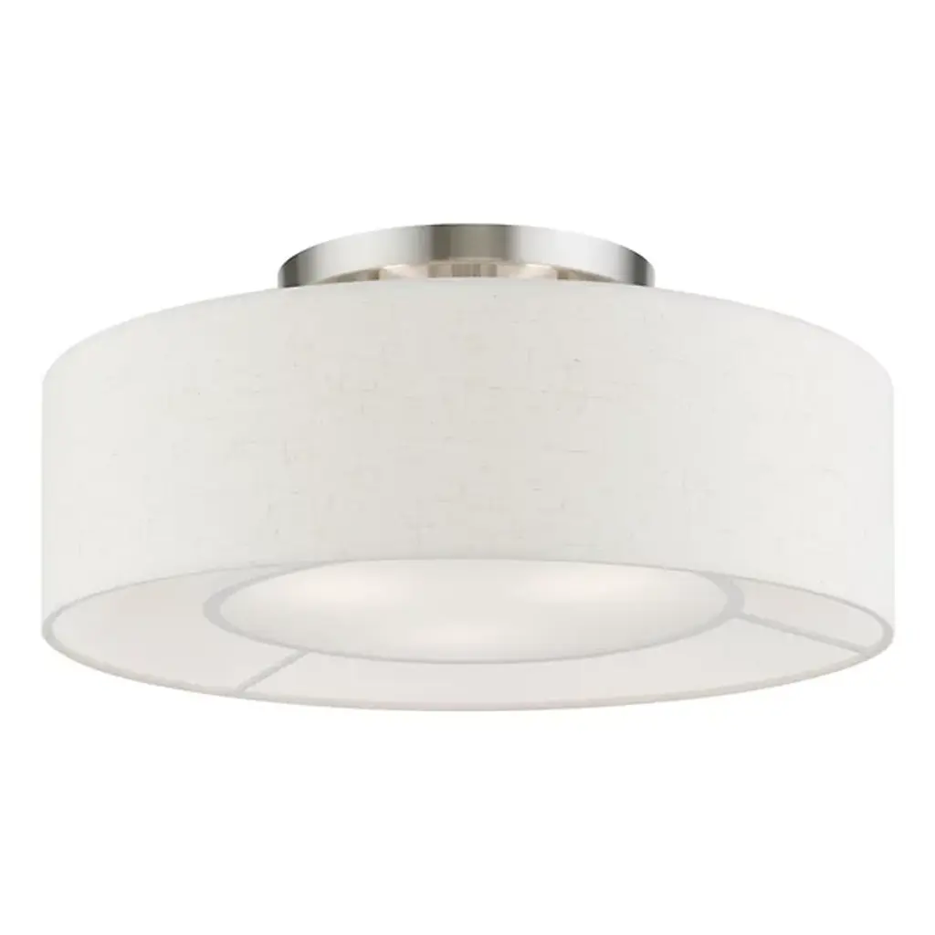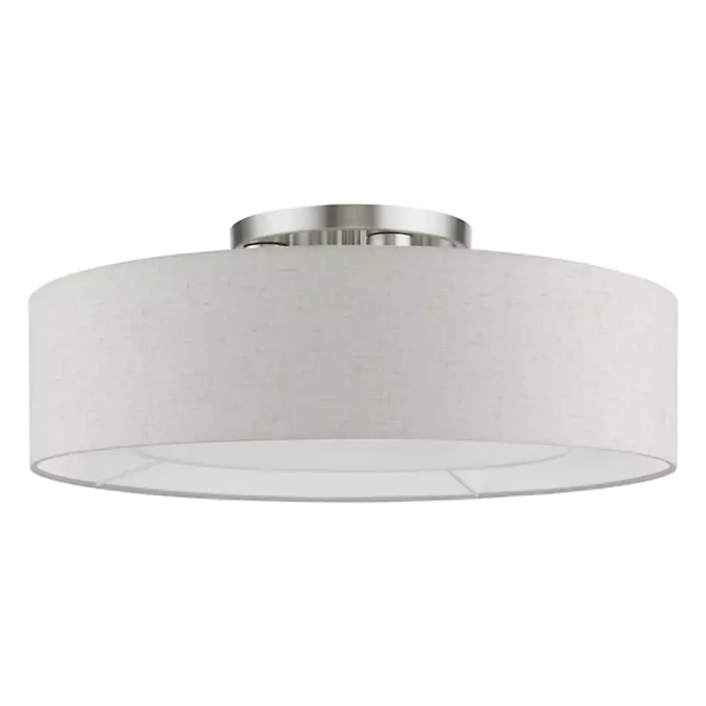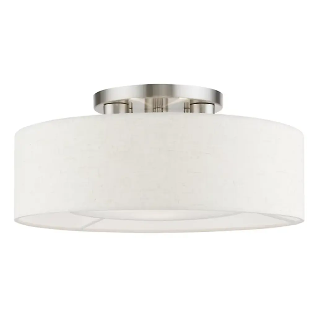 The Aurora Semi-Flushmount from Alder & Ore presents a clean, crisp look and contemporary appeal. The handcrafted fabric hardback shade with a white interior cuts glare to the sides, offering a diffused warm light. The lamping is further gentled by a translucent diffuser, the drum shade adding character to this handsomely styled fixture. It will serve well in the living room, dining room, and bedroom, tastefully elevating their style.
