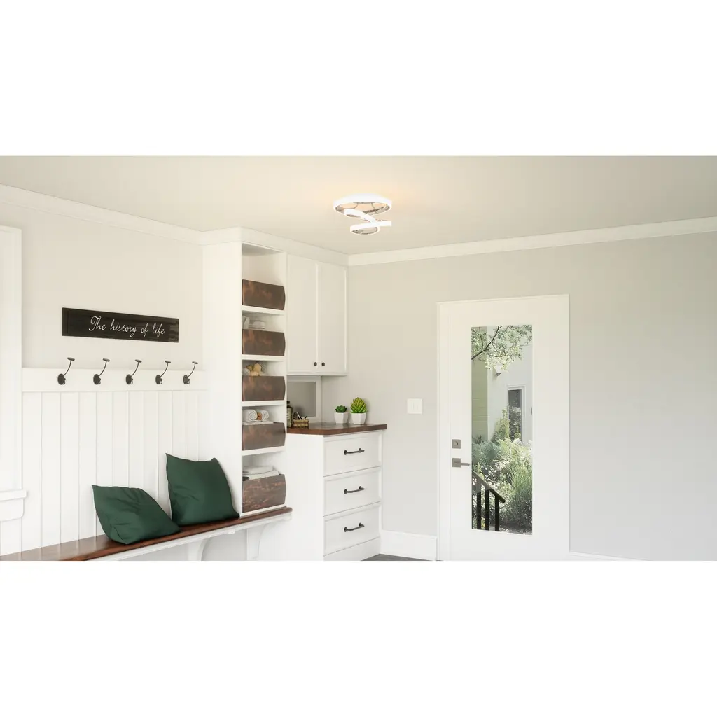 The Aviva light cascades into style with tones of white and polished chrome. Also available in a matte black finish, this semi-flush mount features an integrated LED light source for playful illumination. Use it in a home office or hallway to add contemporary, sculptural style.