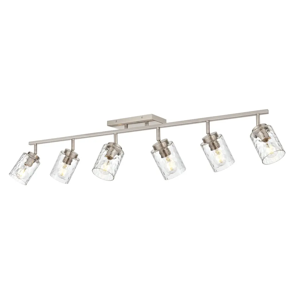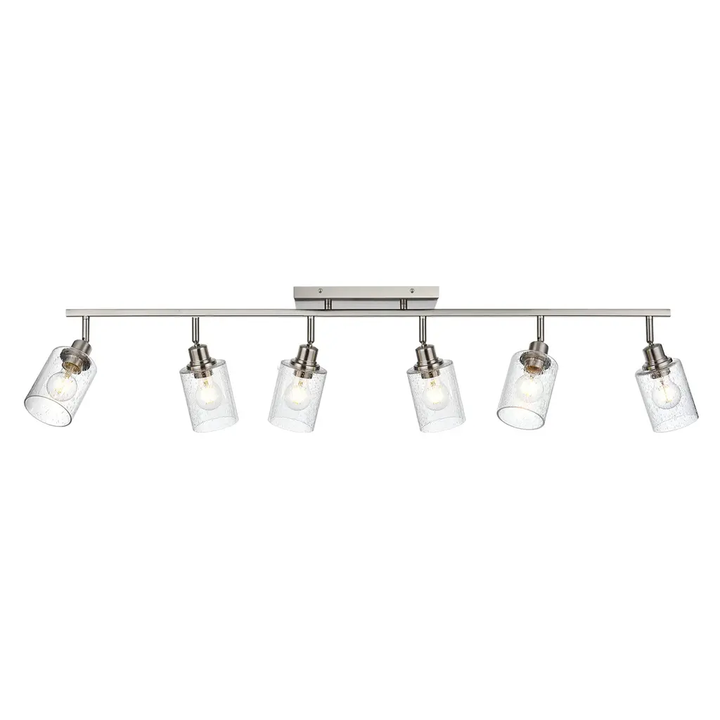 Sleek, smooth, and utterly practical, the Axel Semi-Flushmount by Hinkley Lighting makes its presence known with a blaze of light from above. A circular steel central canopy branches out to two other connection points, offering a sturdy anchor with a minimum of metalwork before continuing down to single-socket housings. The fixture’s arms are articulated to offer a variety of lighting options, while cylindrical glass shades set around the lamping reduce glare from the sides while offering bright pools of light below.