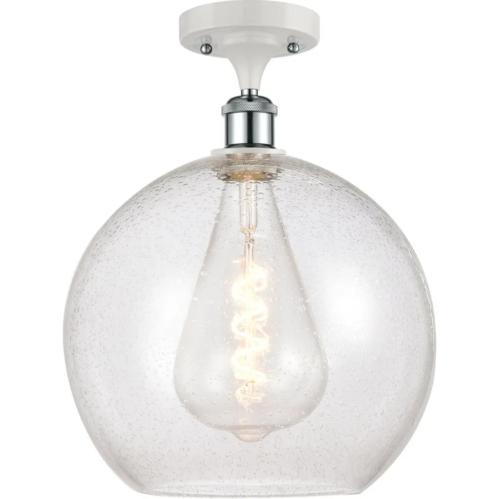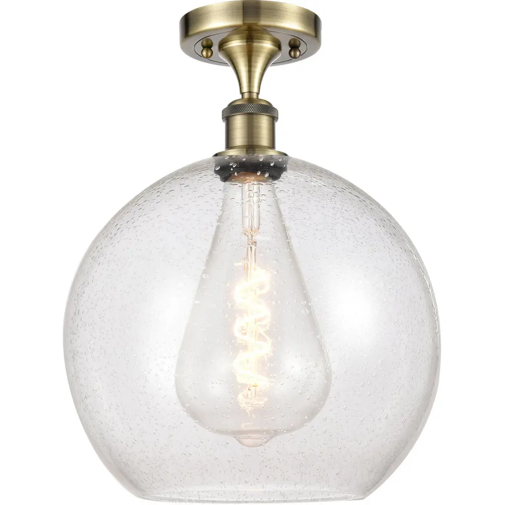 Ballston Athens 1 Light 12 Inch Brushed Satin Nickel Semi-Flush Mount Ceiling Light In Seedy Glass