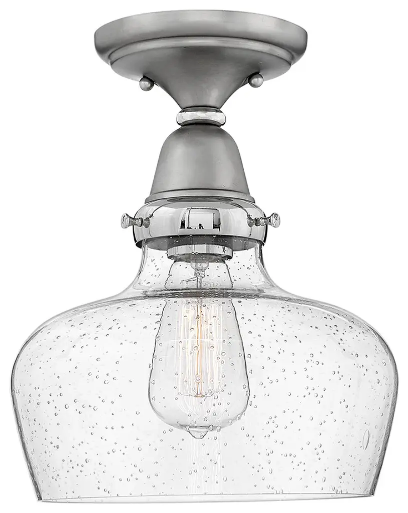 Ballston Athens 1 Light 8 Inch Polished Nickel Semi-Flush Mount Ceiling Light In Seedy Glass, Ballston