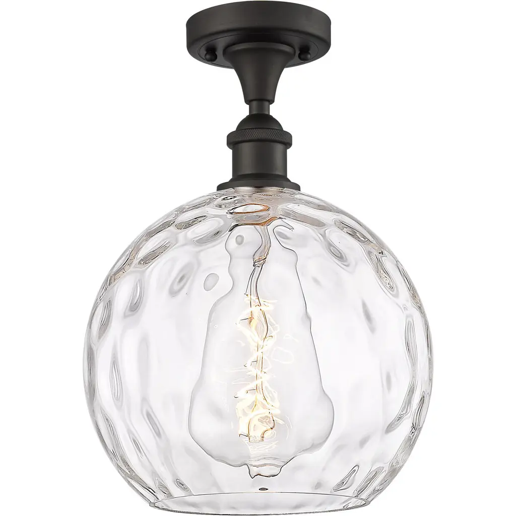Innovations Lighting Athens Water Glass 1 Light 13.75 inch Matte Black Semi-Flush Mount