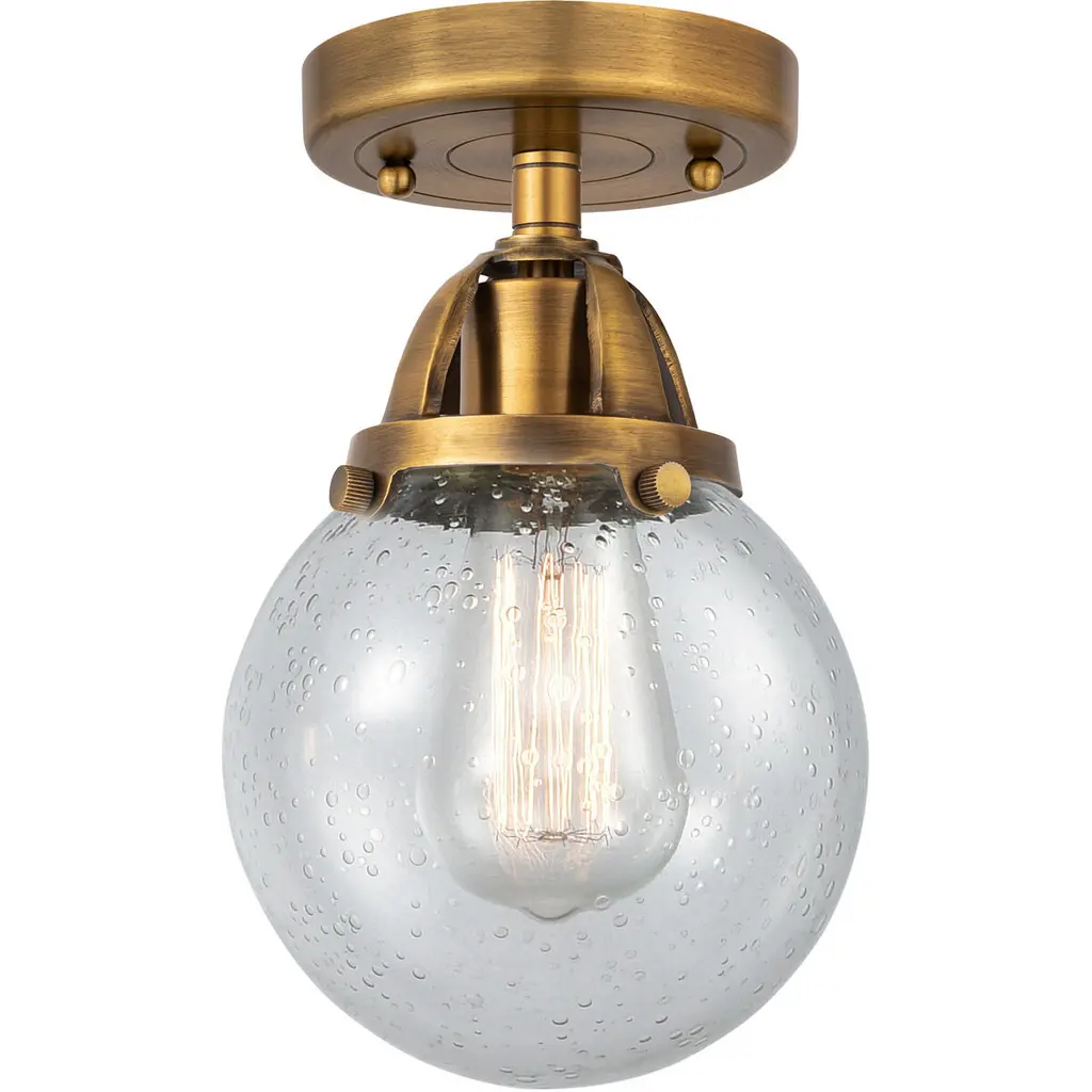 Ballston Beacon 1 Light 6 Inch Antique Copper Semi-Flush Mount Ceiling Light In Seedy Glass