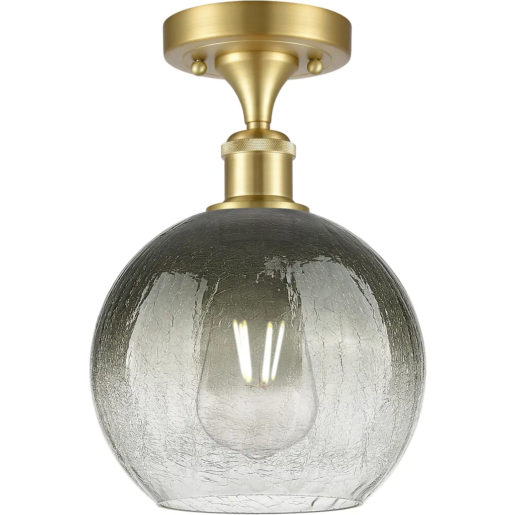 Ballston Brookhaven Globe 1 Light 7.88 Inch Brushed Satin Nickel Semi-Flush Mount Ceiling Light In Slate Glass