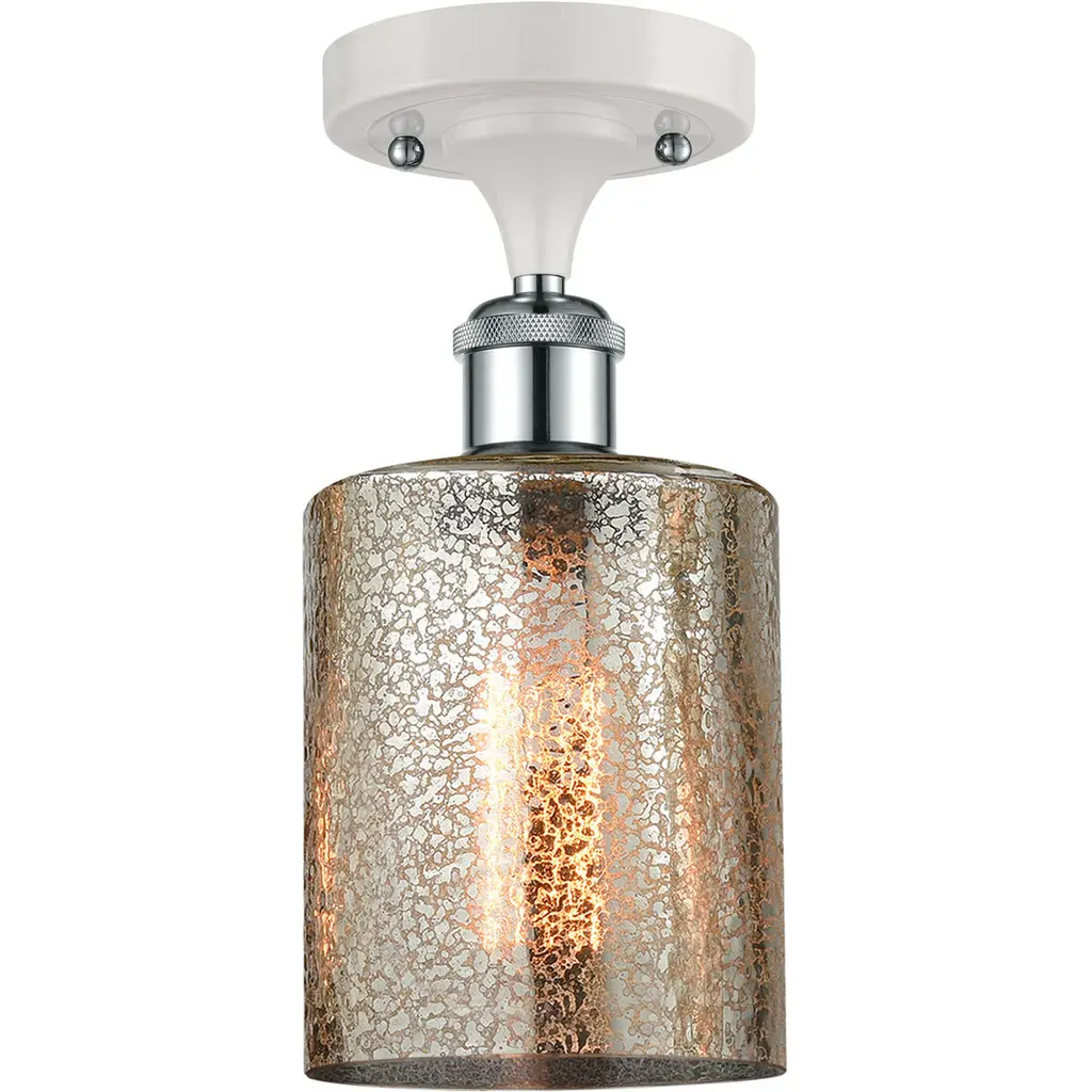 Ballston Cobbleskill 1 Light 5 Inch Black Antique Brass Semi-Flush Mount Ceiling Light In Mercury Glass, Ballston