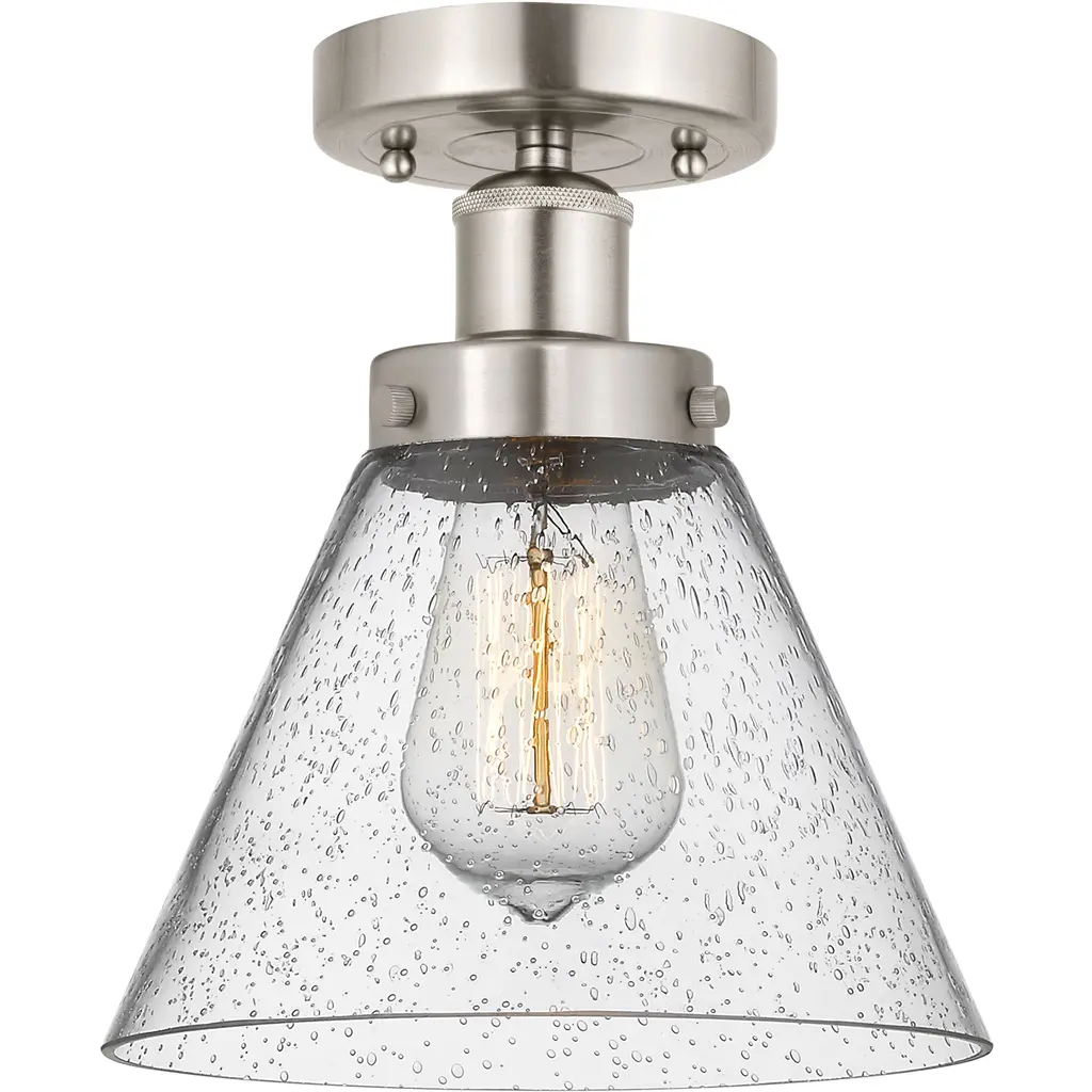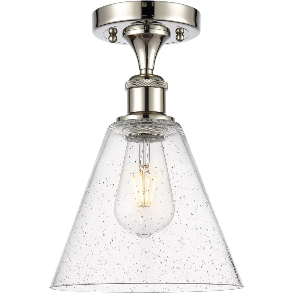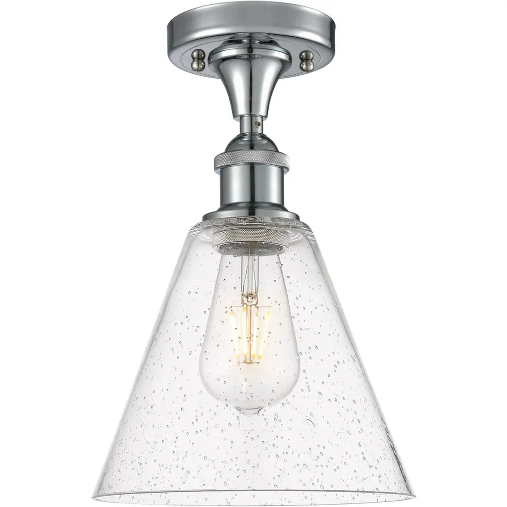 Ballston Cone 1 Light 8 Inch White And Polished Chrome Semi-Flush Mount Ceiling Light In Seedy Glass
