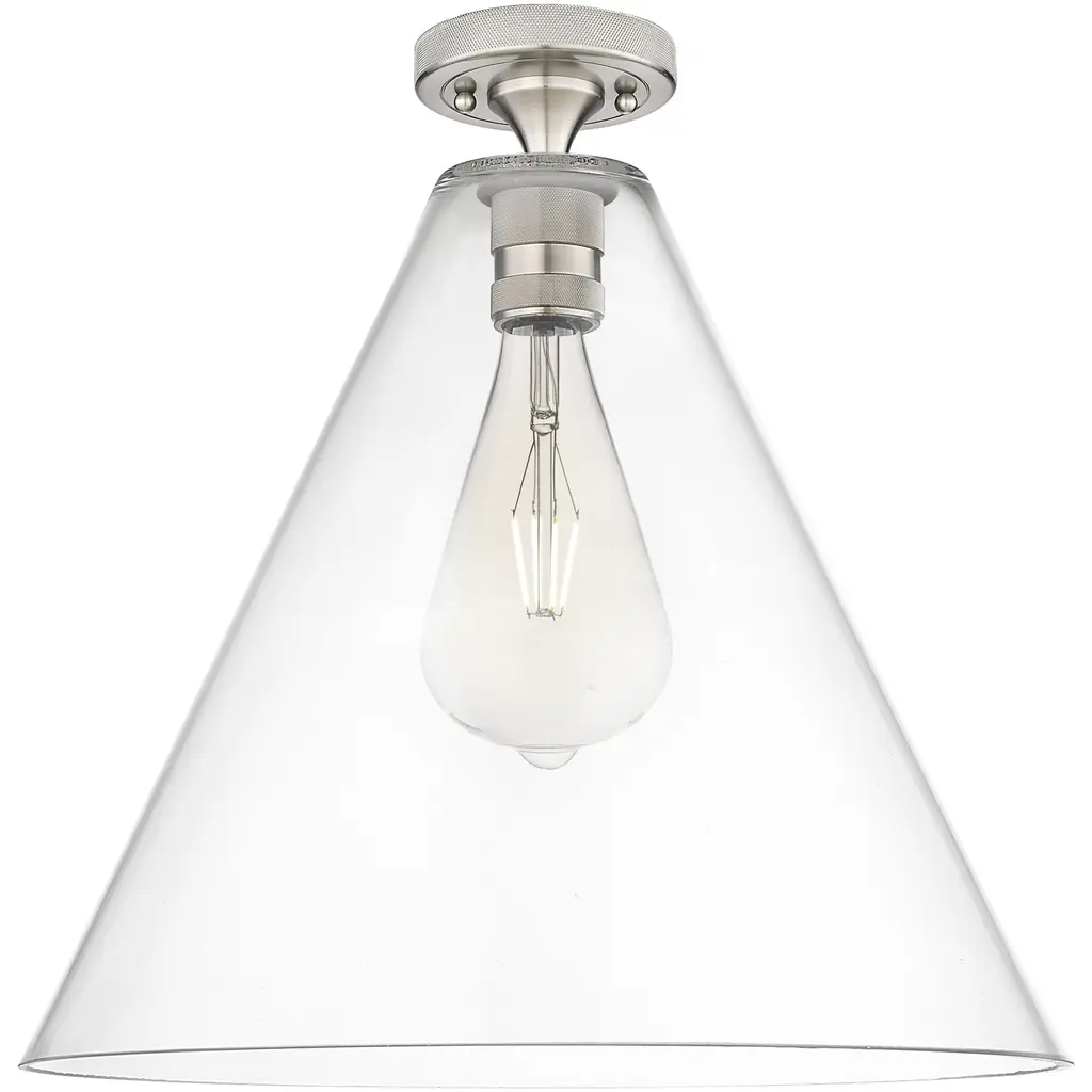 Ballston Cone Led 12 Inch White And Polished Chrome Semi-Flush Mount Ceiling Light In Clear Glass