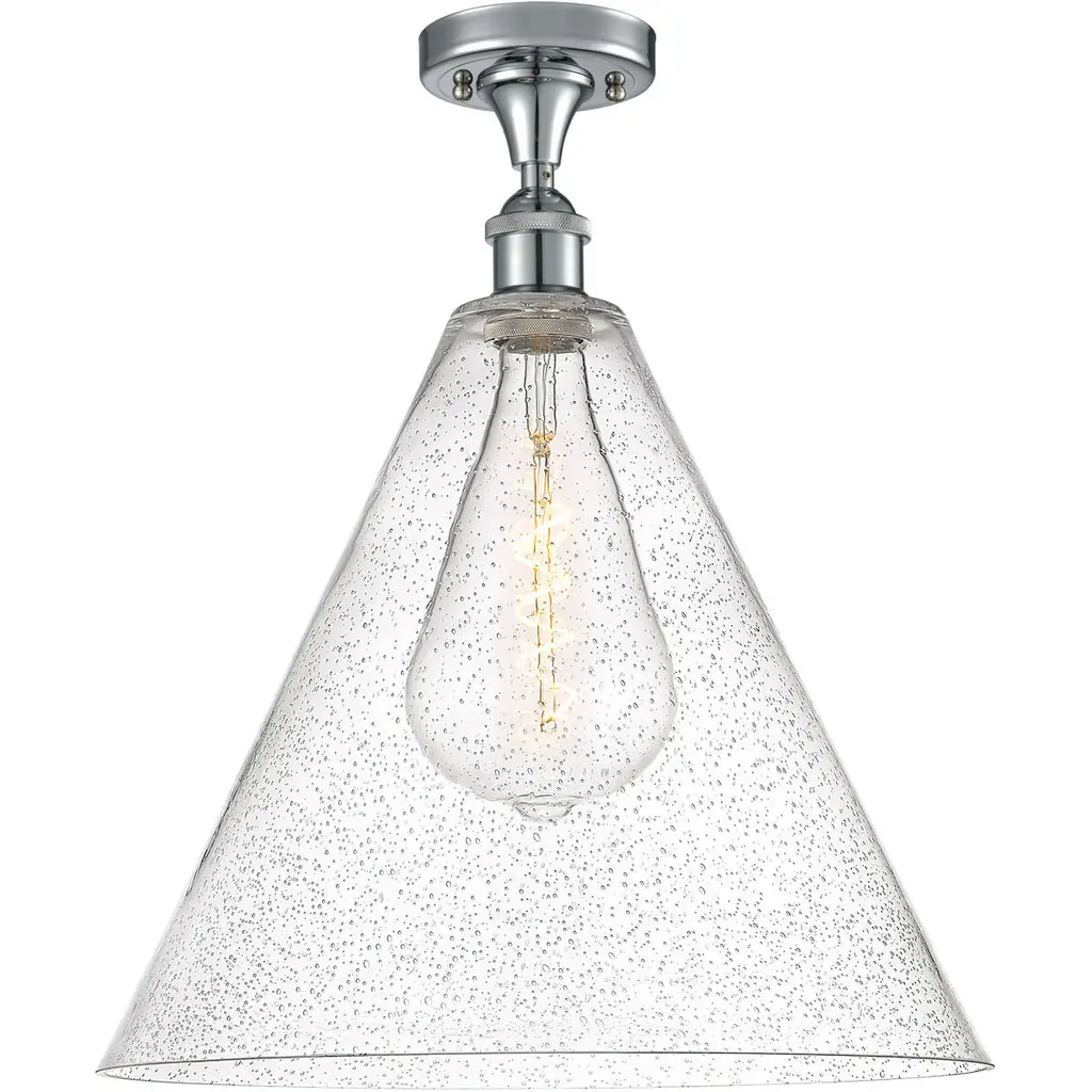 Ballston Cone Led 16 Inch Polished Nickel Semi-Flush Mount Ceiling Light In Seedy Glass