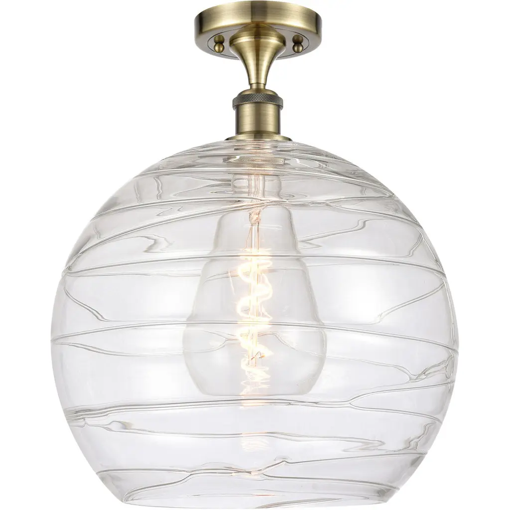 Ballston Deco Swirl 1 Light 14 Inch Antique Brass Semi-Flush Mount Ceiling Light