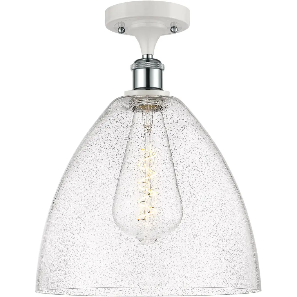 Ballston Dome 1 Light 12 Inch Brushed Brass Semi-Flush Mount Ceiling Light In Seedy Glass