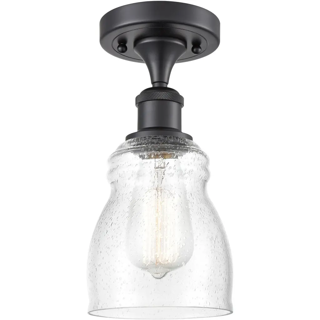 Ballston Ellery 1 Light 5 Inch Matte Black Semi-Flush Mount Ceiling Light In Seedy Glass, Ballston