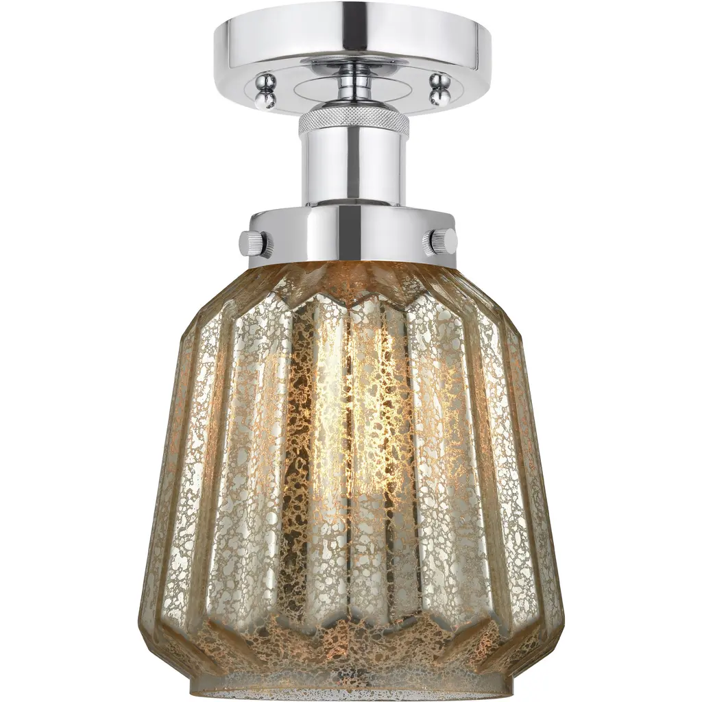 Ballston Fenton 1 Light 7 Inch Polished Chrome Semi-Flush Mount Ceiling Light In Mercury Glass, Ballston